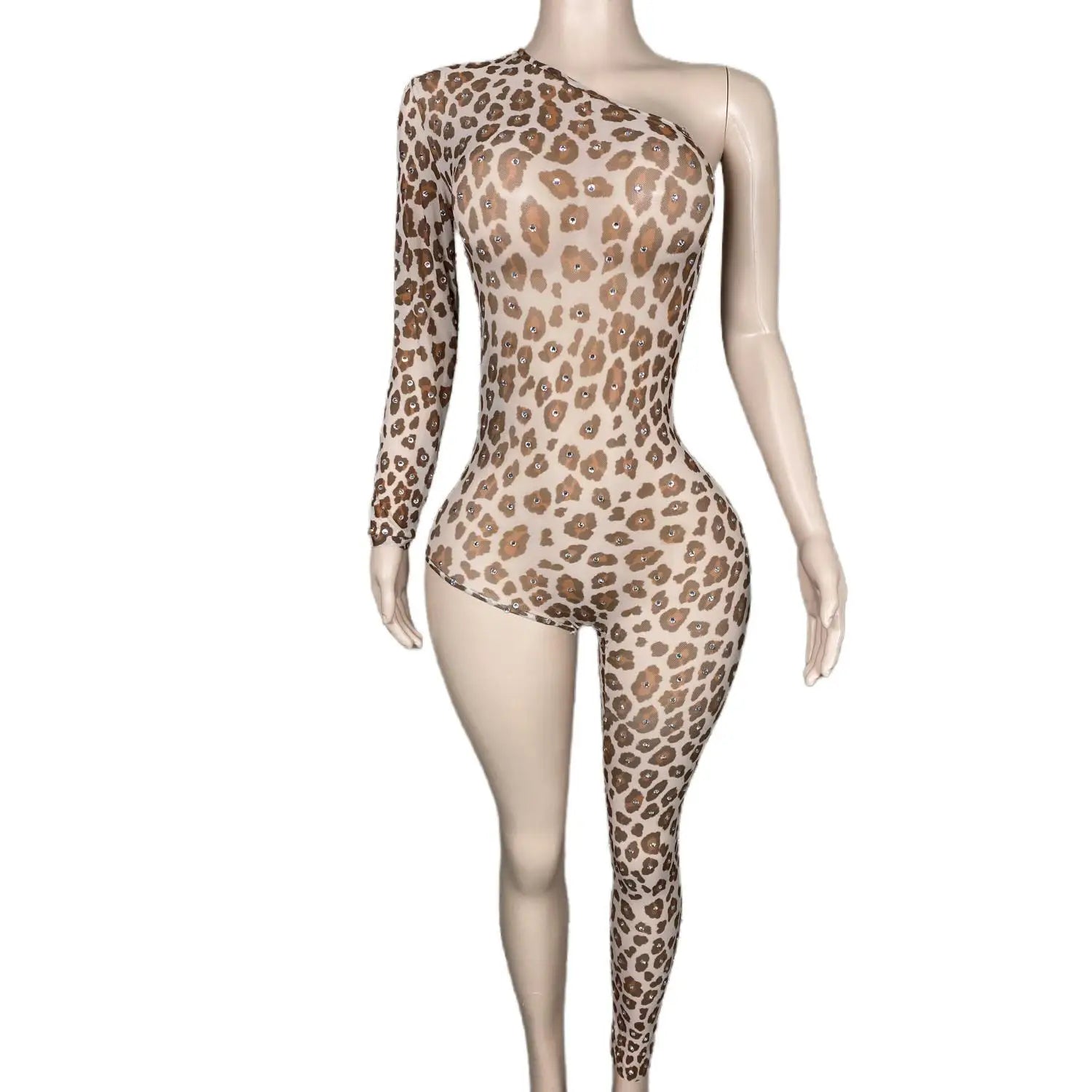 Sexy Leopard Print Jumpsuit Women Unilateral design Performance Costume Party Nightclub Party Outfit Dancer Stage Wear