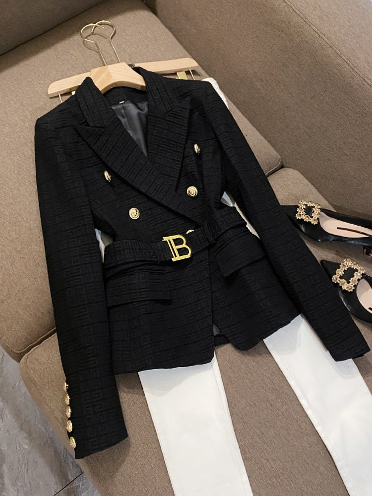 Women Coat Shawl Collar Double-breasted Office Lady Solid Blazer with Belt