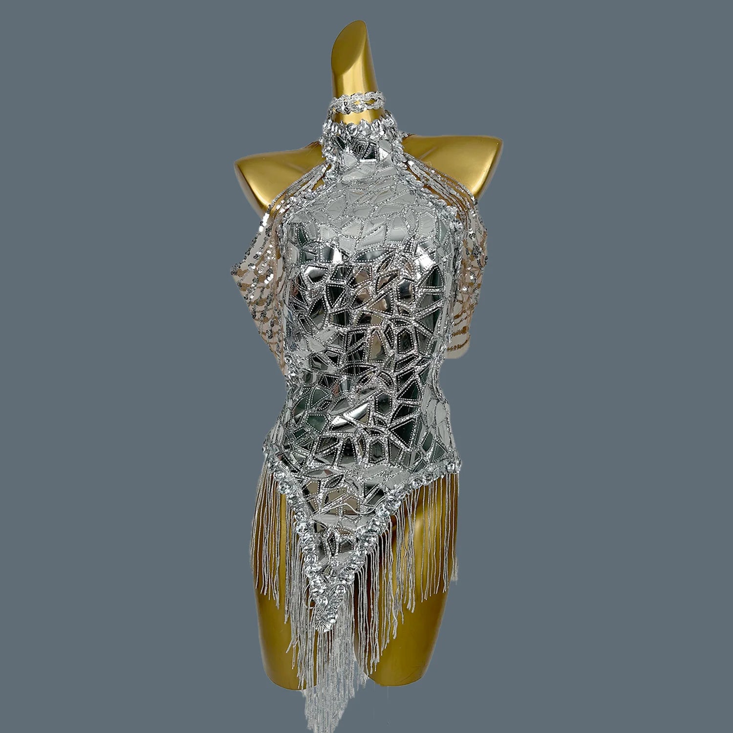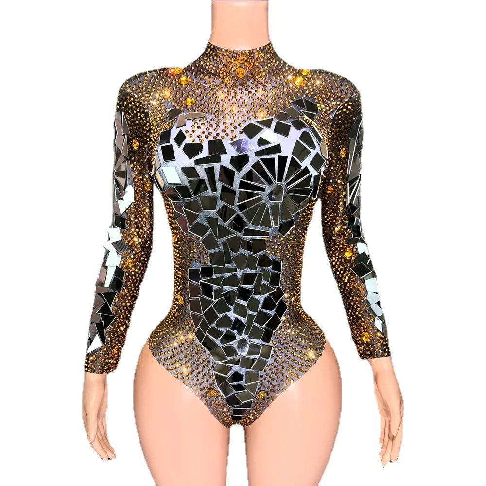 Sparkly Silver Mirrors Gold Rhinestones Leotard for Women Sexy Dance Bodysuit Performance Costume Nightclub DS Show Stage Wear