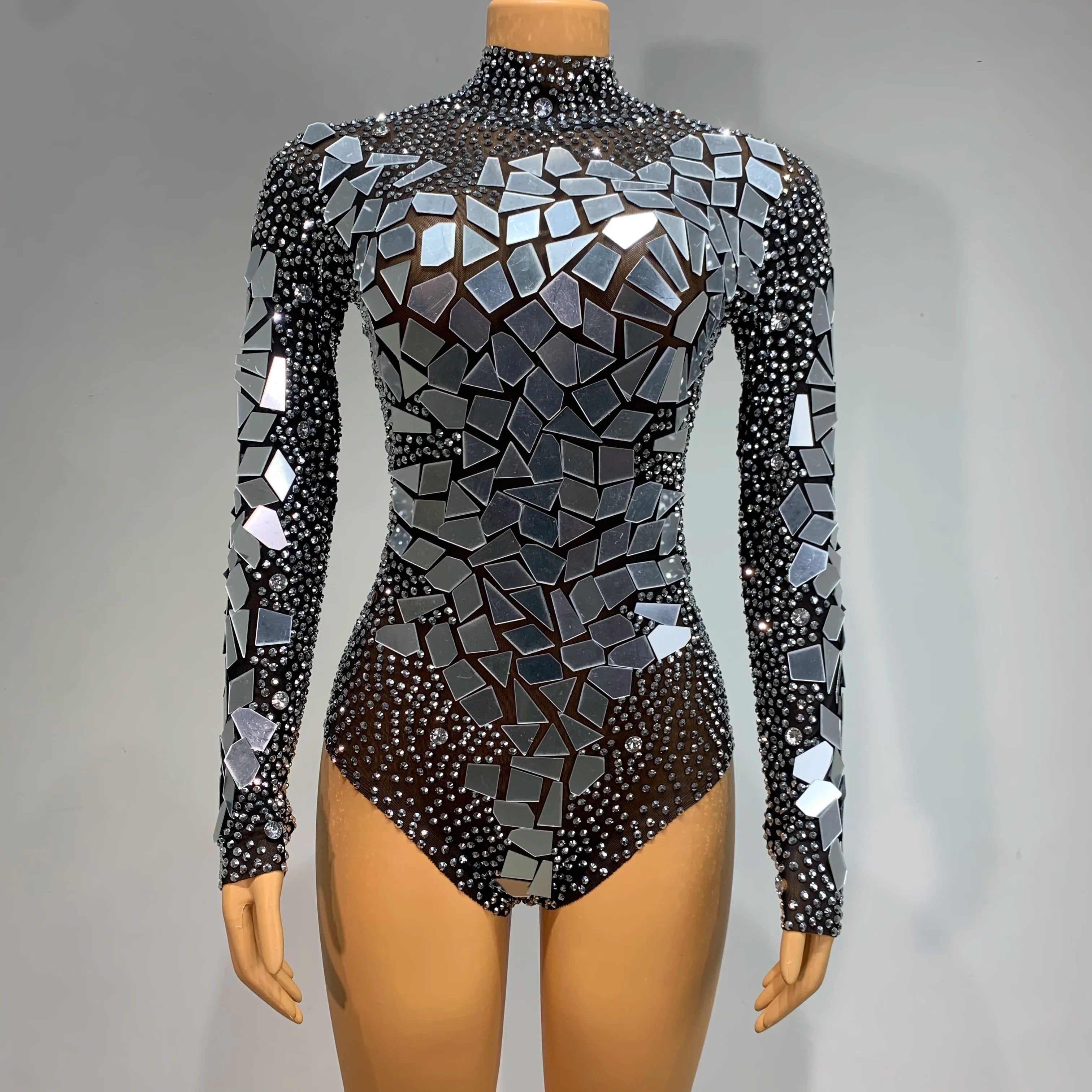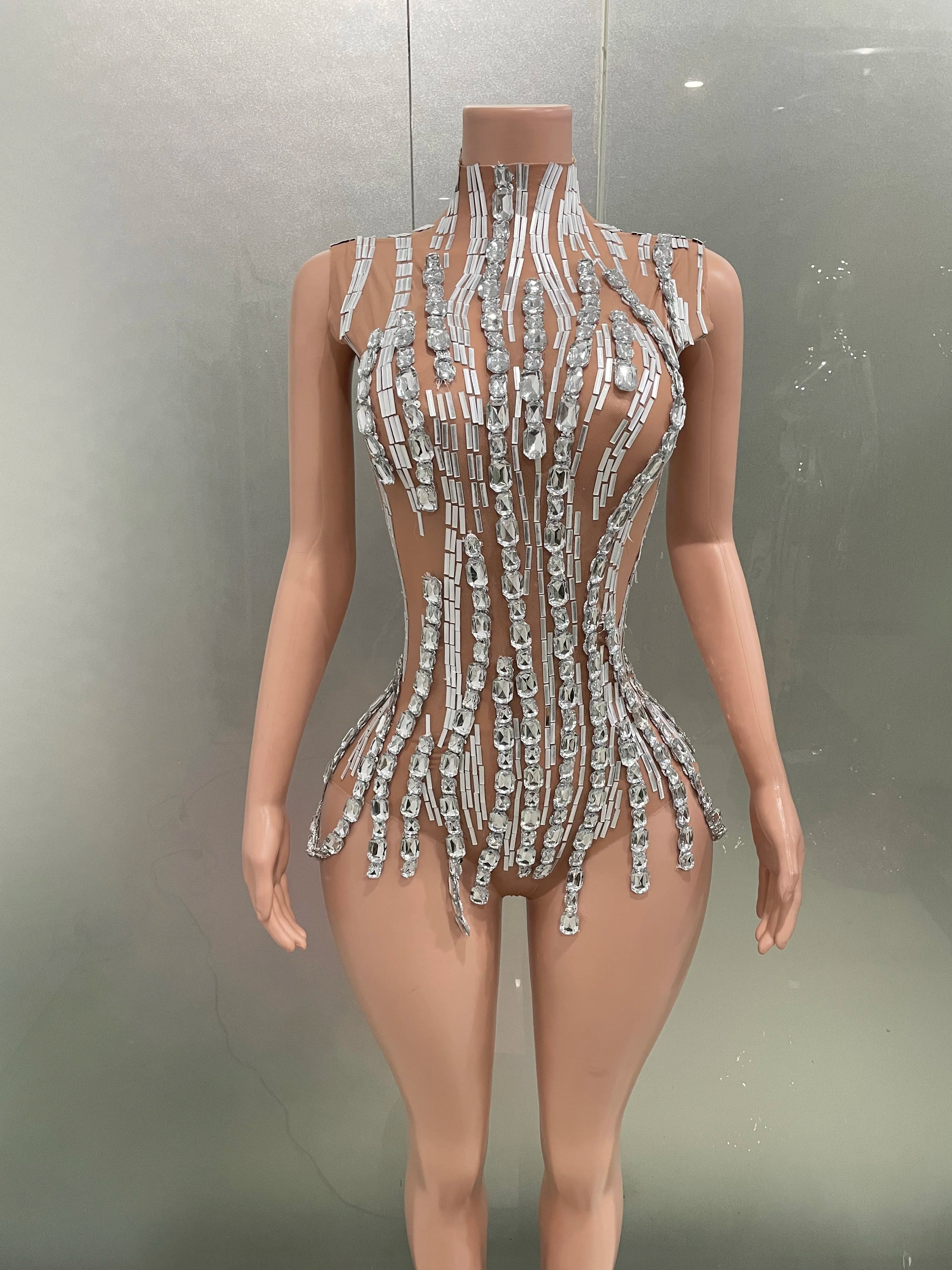 Luxury Rhinestones Mirrors Sexy Sheath Bodysuit Women Nightclub DJ Performance Costume Evening Party Celebrate Stage Wear