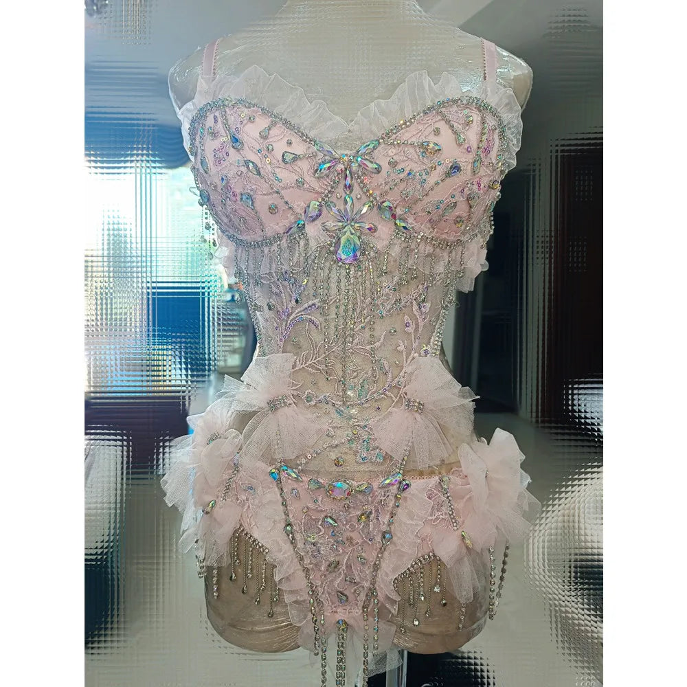 Gogo Costume Club Party Show Rave Outfit Nightclub Bar DJ Dancer Performance Clothes Sexy Pole Dance Rhinestone Bikini Bodysuit