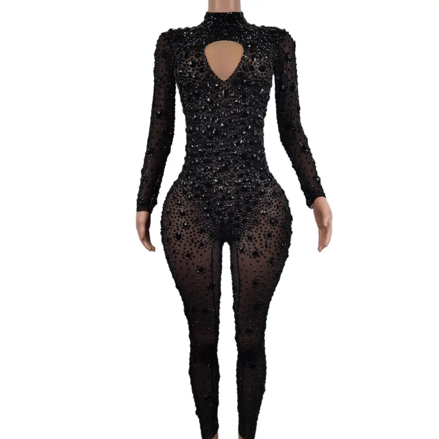 Luxury Diamond Crystal Bodycon Jumpsuits Showgirl Festival Outfit Dancer Bodysuit Women Birthday Celebrate Party Rhinestone Wear
