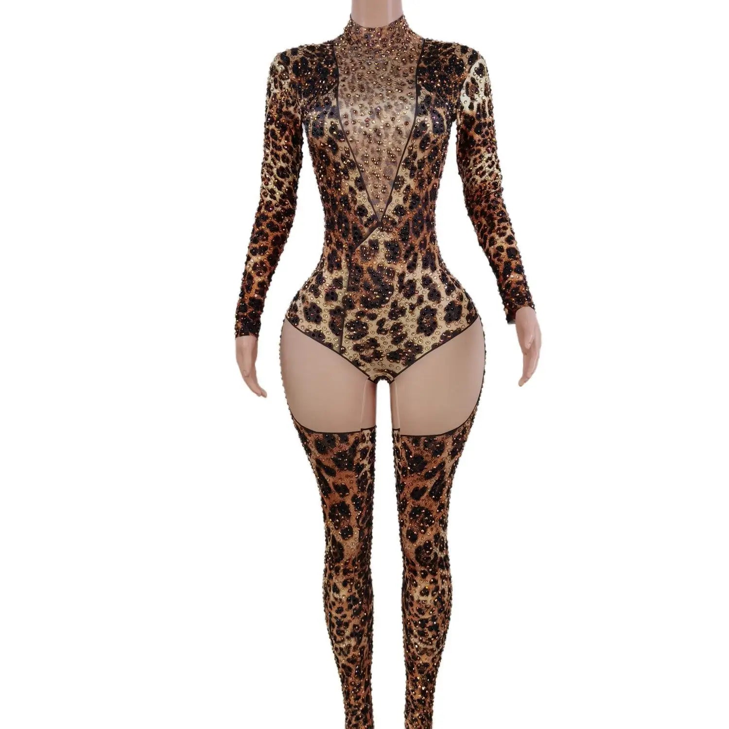 Streetwear Leopard Print Sexy Bodysuit Printed One Piece Outfit Woman Overall Long-sleeved Women's Jumpsuit