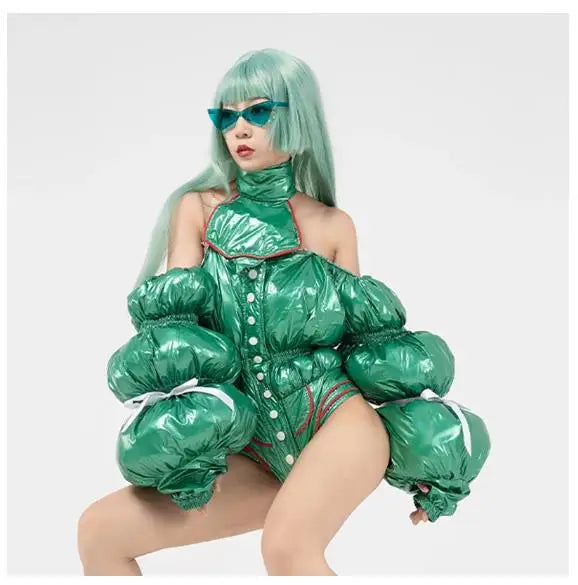 Nightclub Gogo Dance Stage Costume Off-Shoulder Space Cotton Bodysuit Model Clothes Drag Queen Wear Festival Clothing