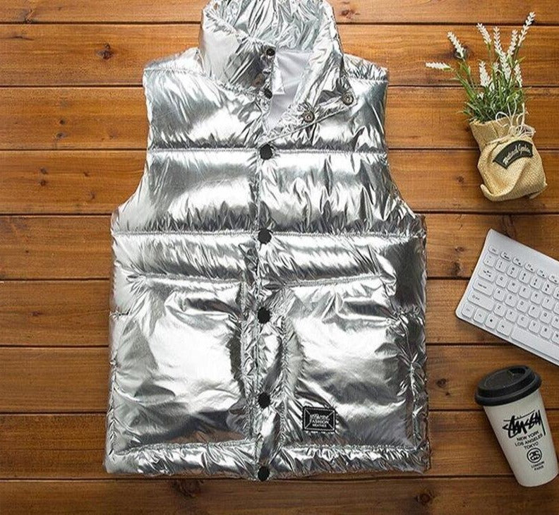 Winter Women Metal Color Vest Women's Ultra Light Vest Jacket Stand Collar Sleeveless Silver Gold Vests