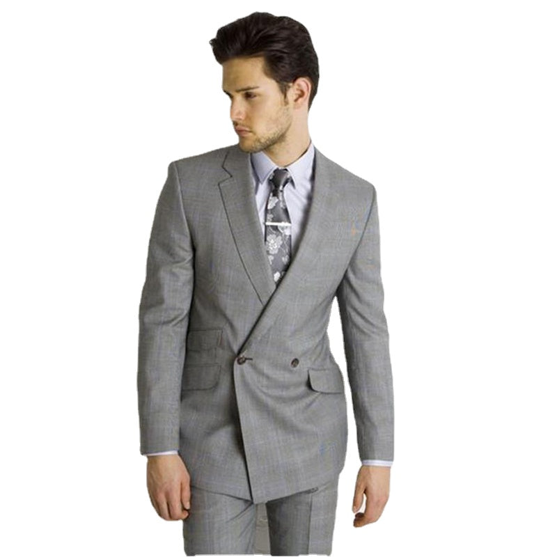 Custom Made Light Grey Double Breasted Suit Side Vent Slim Fit Men Suit Wedding Men Suits Bridegroom 2 Pcs(Jacket+Pants+Tie)