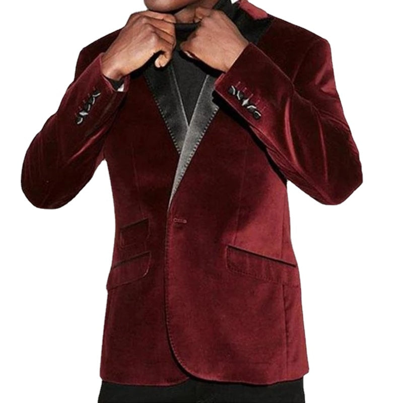 Burgundy Velvet Men Suits Slim Fit Formal Groom Tuxedos for Wedding Terno 2 Pieces Shawl Lapel Blazer (Jacket+Pants)