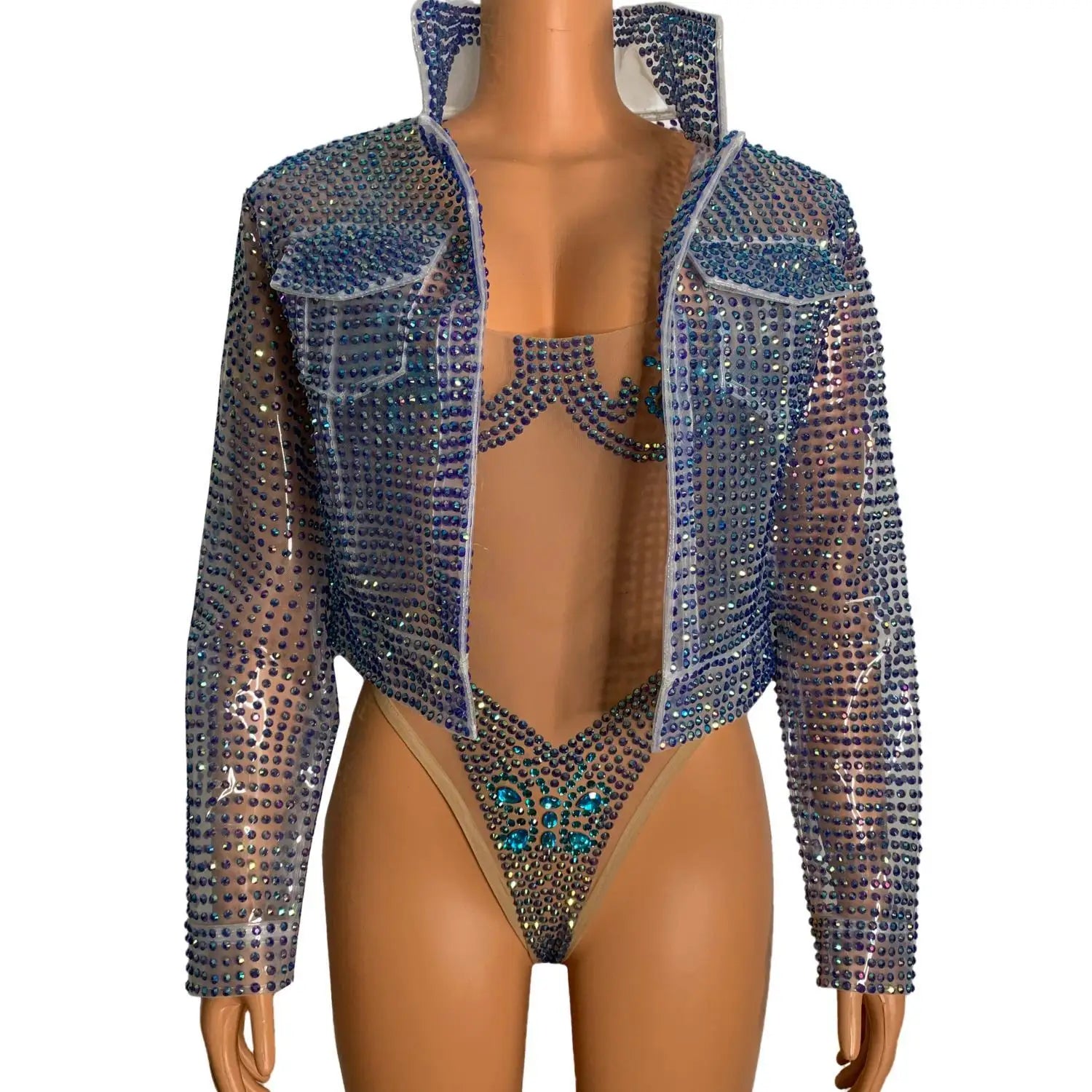 Luxury Rhinestone TPU Jacket One Piece Bodysuits Women Singer Pageant Night Out Wear Drag Queen Show Costume