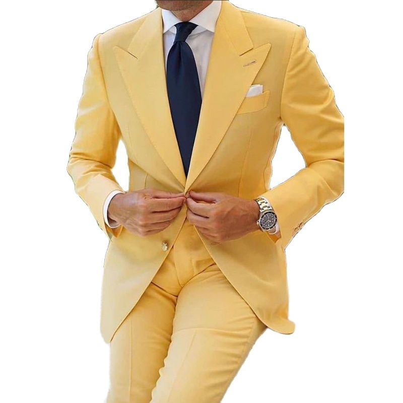 Yellow Prom Men Suits Slim Fit Peaked Lapel Wedding Groom Tuxedos 2 Piece Jacket with Pants