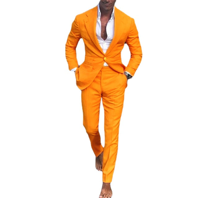 Linen Beach Men Suits Slim Fit for Wedding 2 Piece Groom Tuxedo Custom Blazer Prom Suit Blazer ( Jacket+Pants)