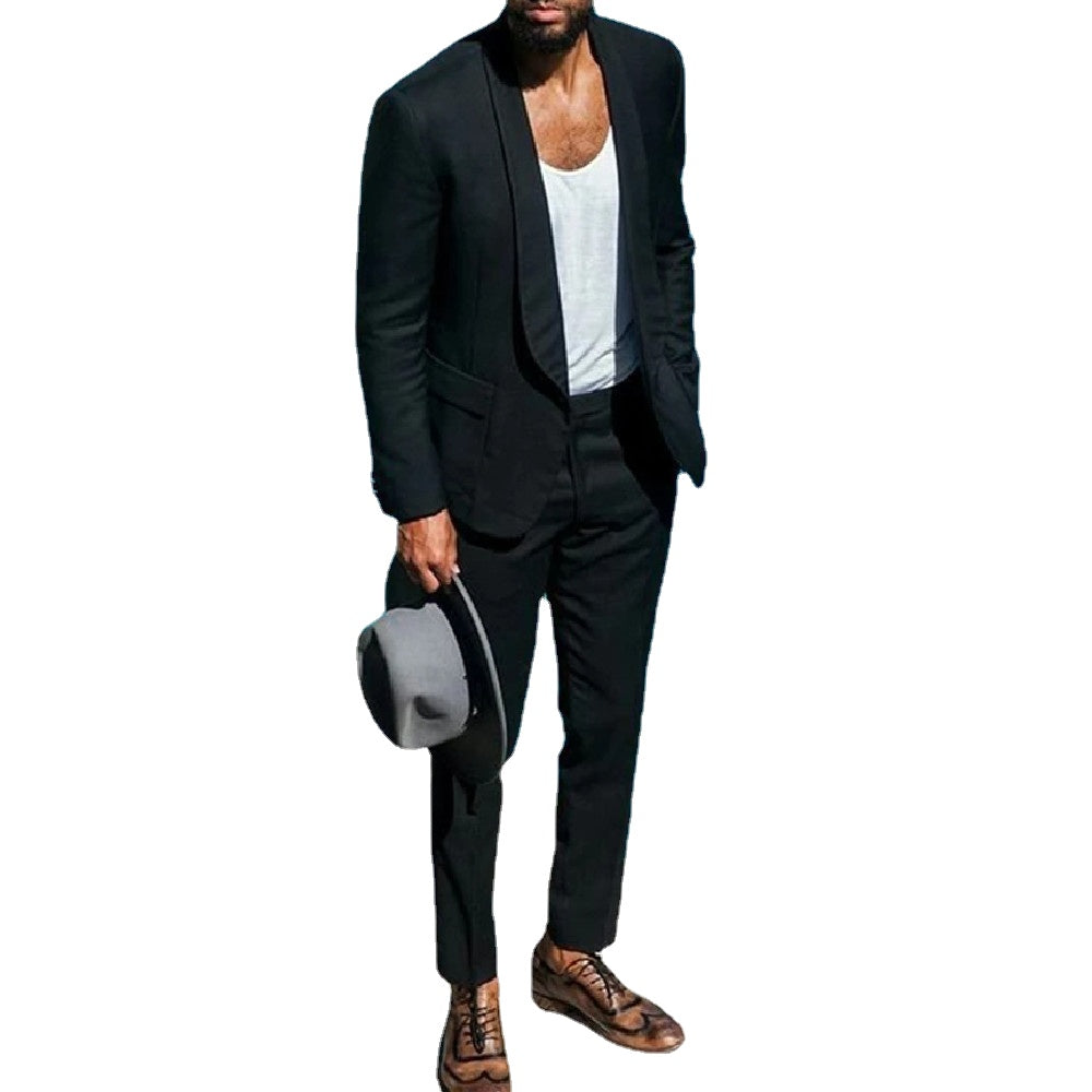 Black Casual Shawl Lapel Men Suits Prom Slim Fit Costume Homme Terno Groom Wear Blazer Wedding 2 Pcs (Jacket+Pant)