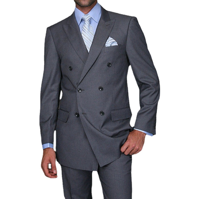 Dark Grey Wedding Suits with Double Breasted Slim Fit British Style Custom Made Groom Tuxedo 2 Piece Jacket Pants