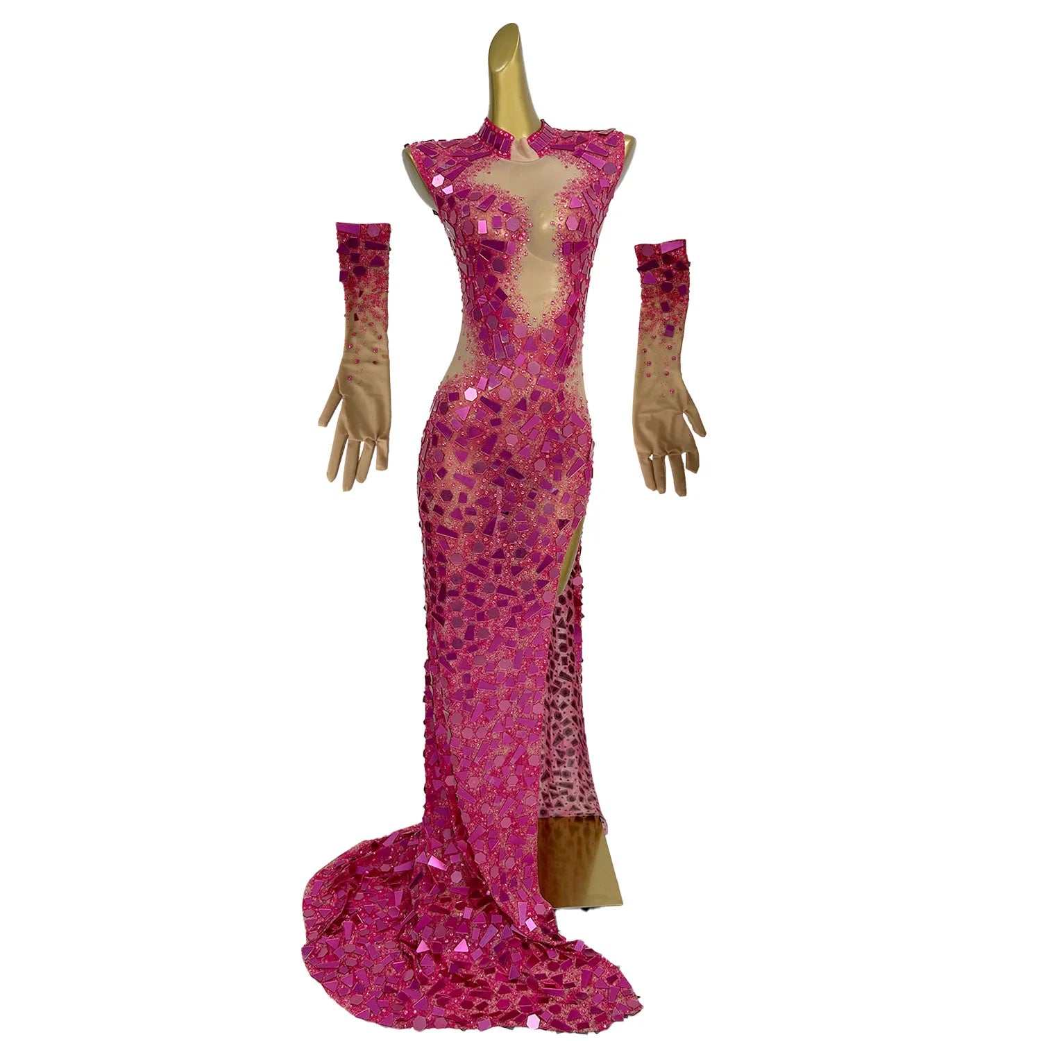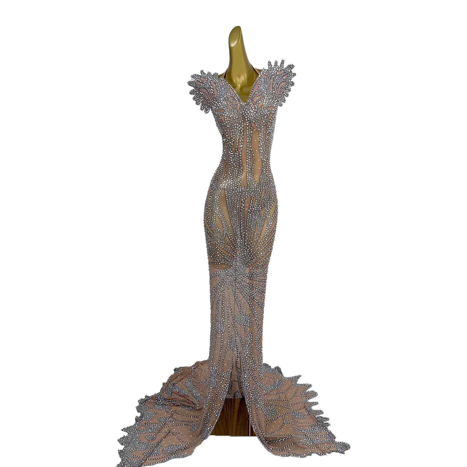 Sexy Party Banquet Evening Dresses Women Sparkly Rhinestone Long Dress Nightclub Singer Stage Costume Festival Clothing
