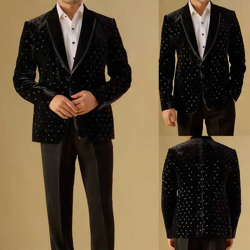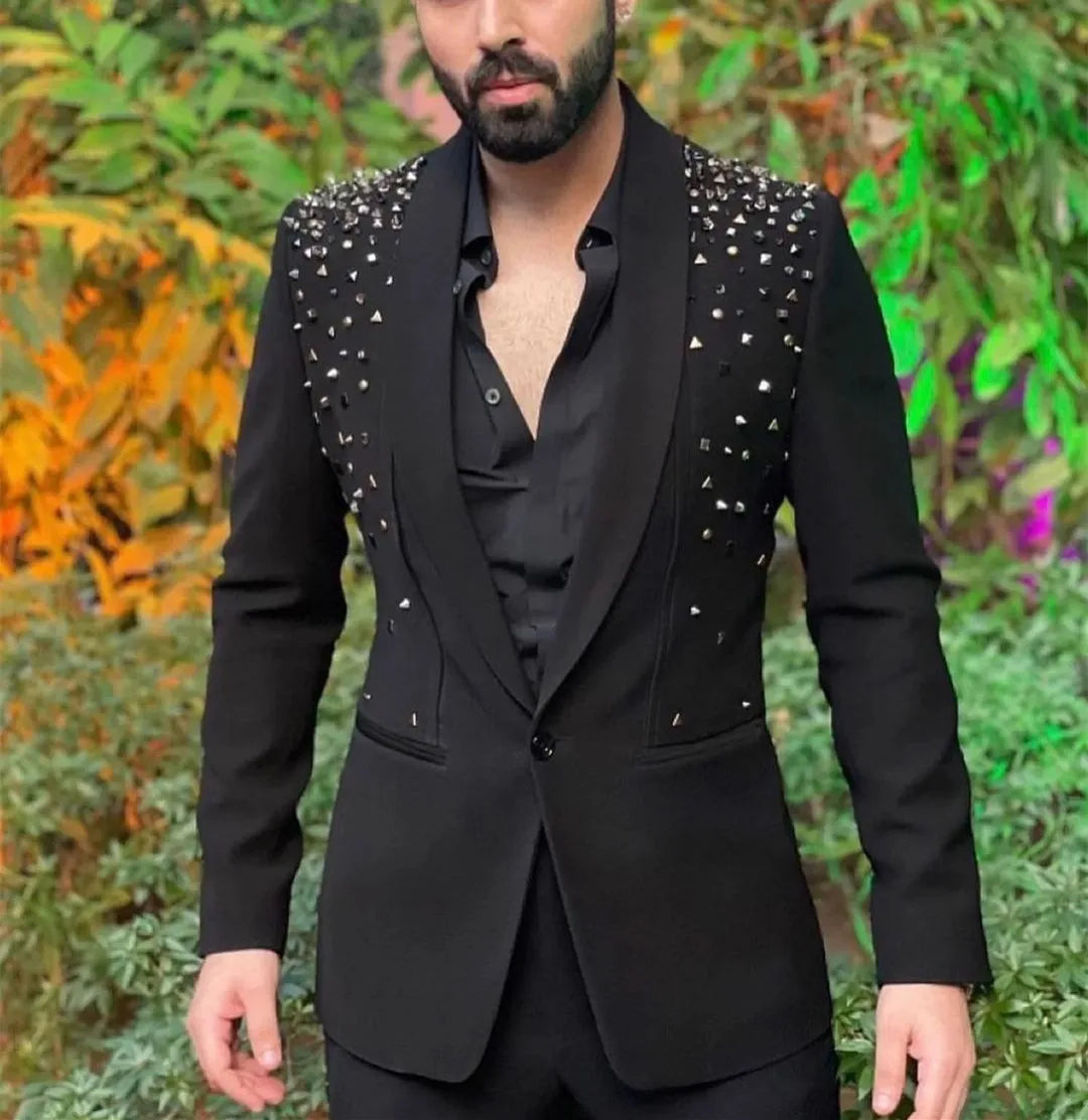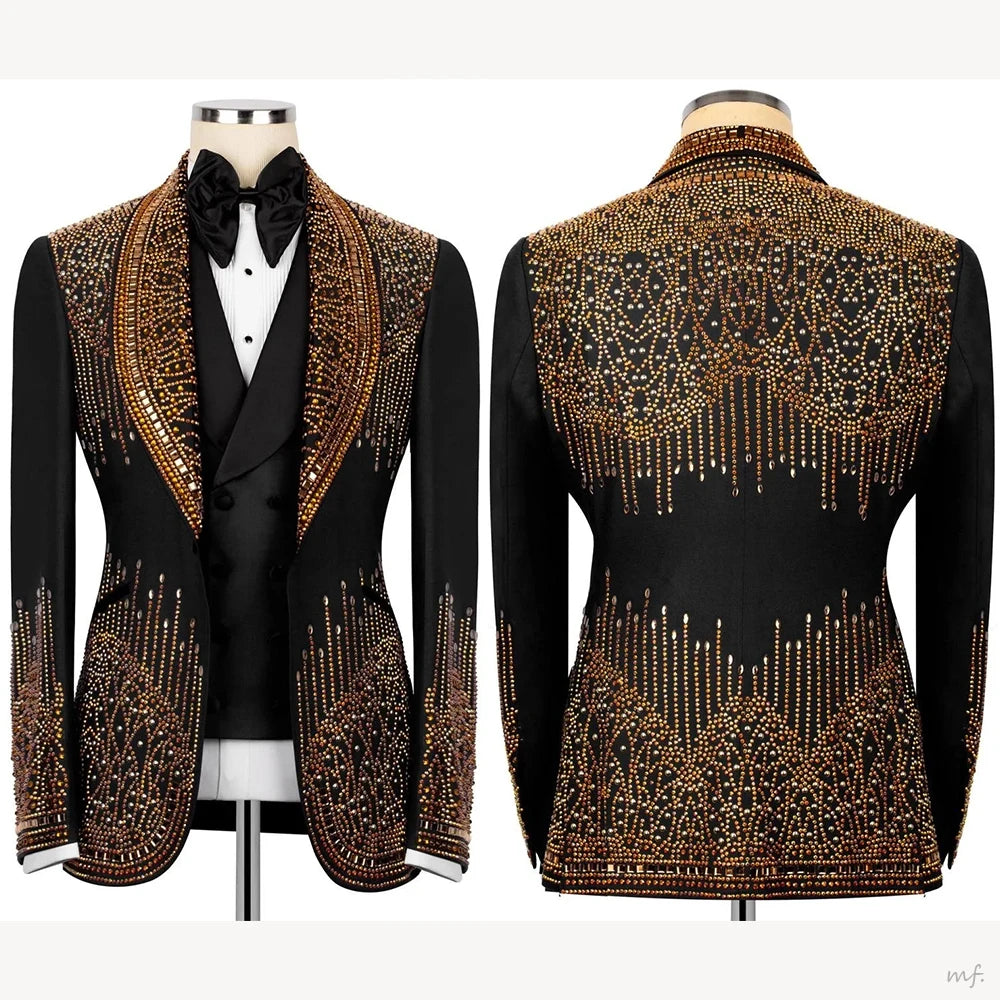 Luxury Men Suit 2-Piece Blazer Single Breasted Jacket Crystals Beaded Slim Fit Wedding Tuxedo Groom Prom Customized