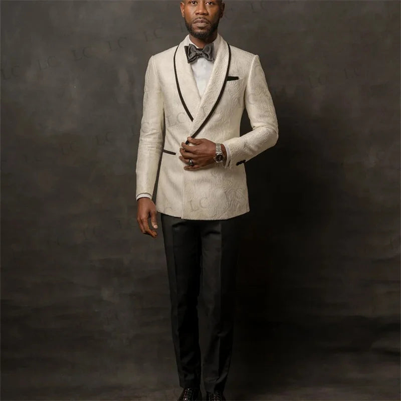 Floral Jacquard 2 Pieces Blazer Pants Men Suits Tuxedo Vent One Button Fashion Formal Prom Wedding Groom Plus Size Tailored
