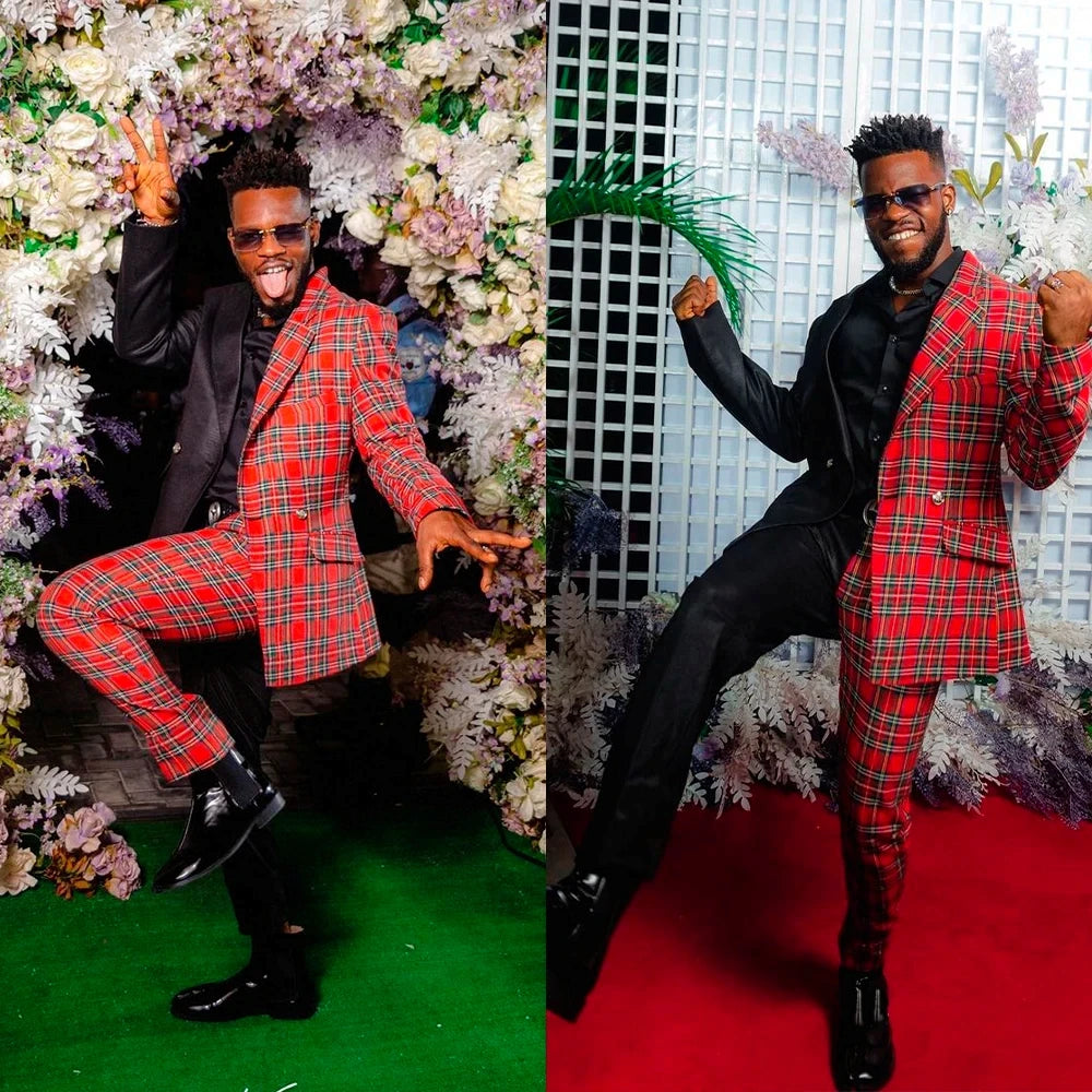 High Fashion 2 Pieces Blazer Pants Spliced Men Suits One Button Red Checkered Peaked Lapel Formal Wedding Groom Prom Tailored