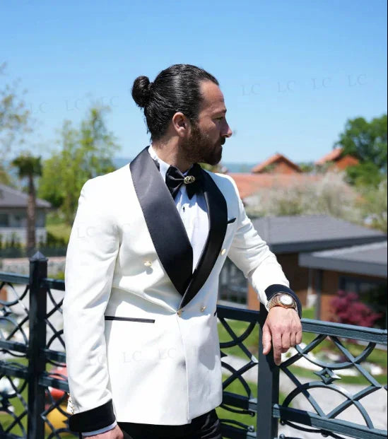 Appliques Beads 2 Pieces Blazer Pants Men Suits One Button Cape Satin Peaked Lapel Formal Wedding Groom Prom Tailored