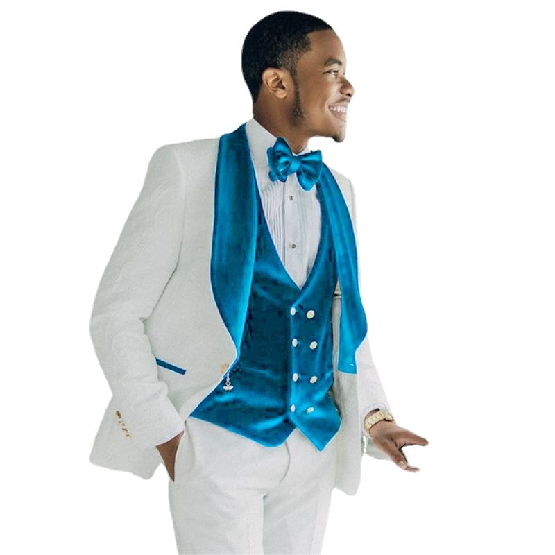 Costume Homme White Jacquard Men Suits For Wedding 3 Pieces Luxury Velvet Lapel Groom Tuxedos Party Prom Terno Blazer