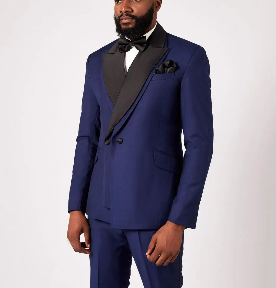 2 Pieces Blazer Pants Men Suits One Button Satin Peaked Lapel Formal Prom Work Wear Wedding Groom Plus Size Tailored