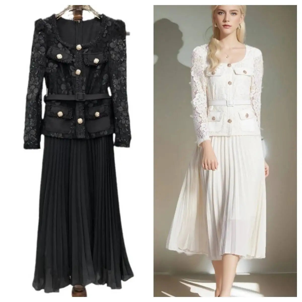 Summer Autumn Fashion Flower Embroidery Lace Prom Evening Dress Women Long Sleeve Layers Wooden Ear Edge Midi Cake Dresses Party
