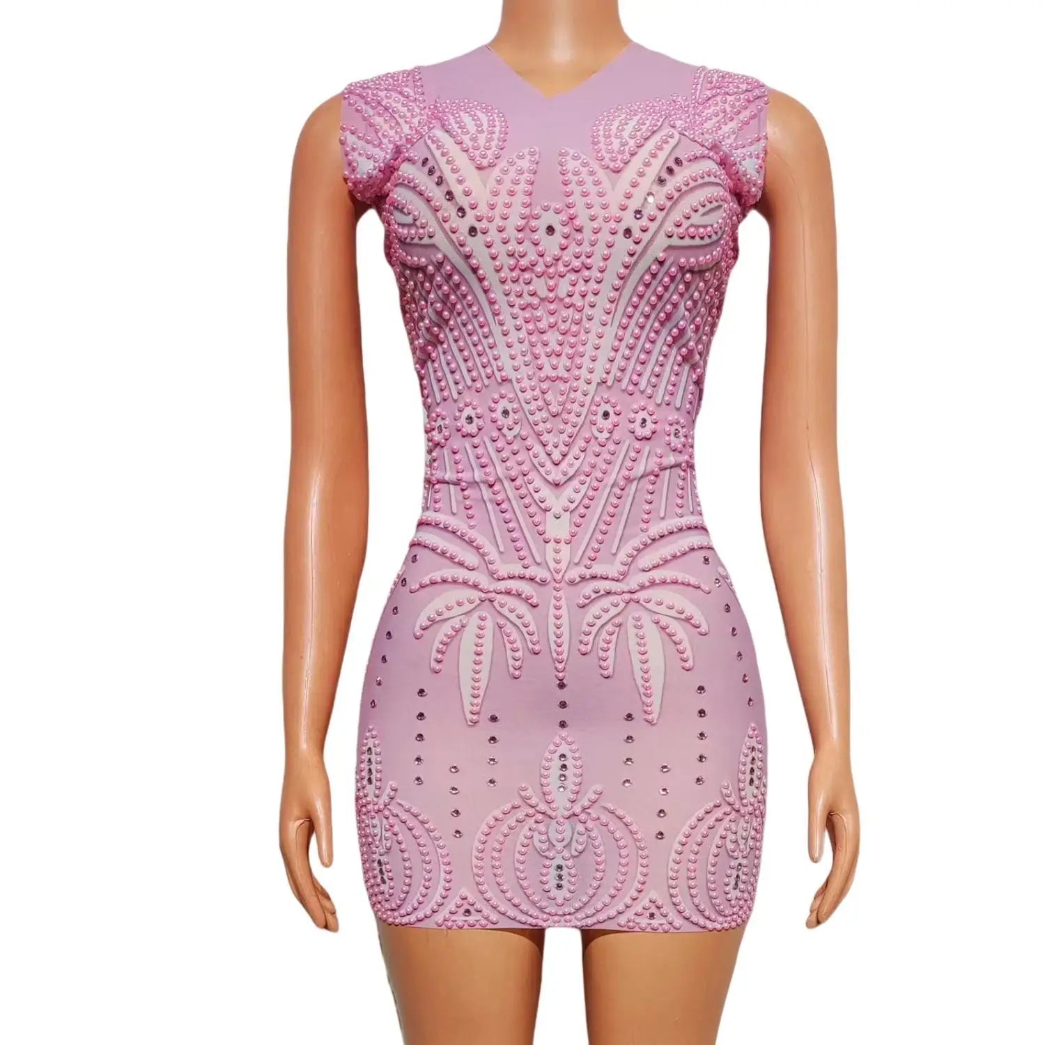 Pink Sleeveless Short Dress Luxury Pearls Bling Rhinestones Playful Charming Birthday Dress Dance Party Elegant Dress