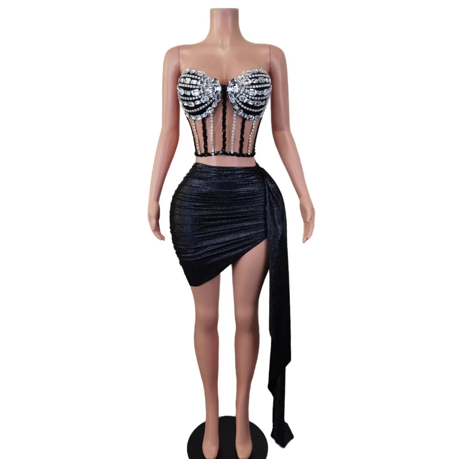 Women 2 Pieces Set Sexy Tube Bandage Short Dress Sparkly Diamonds Dinner Evening Prom Celebrate Birthday Photography Dress