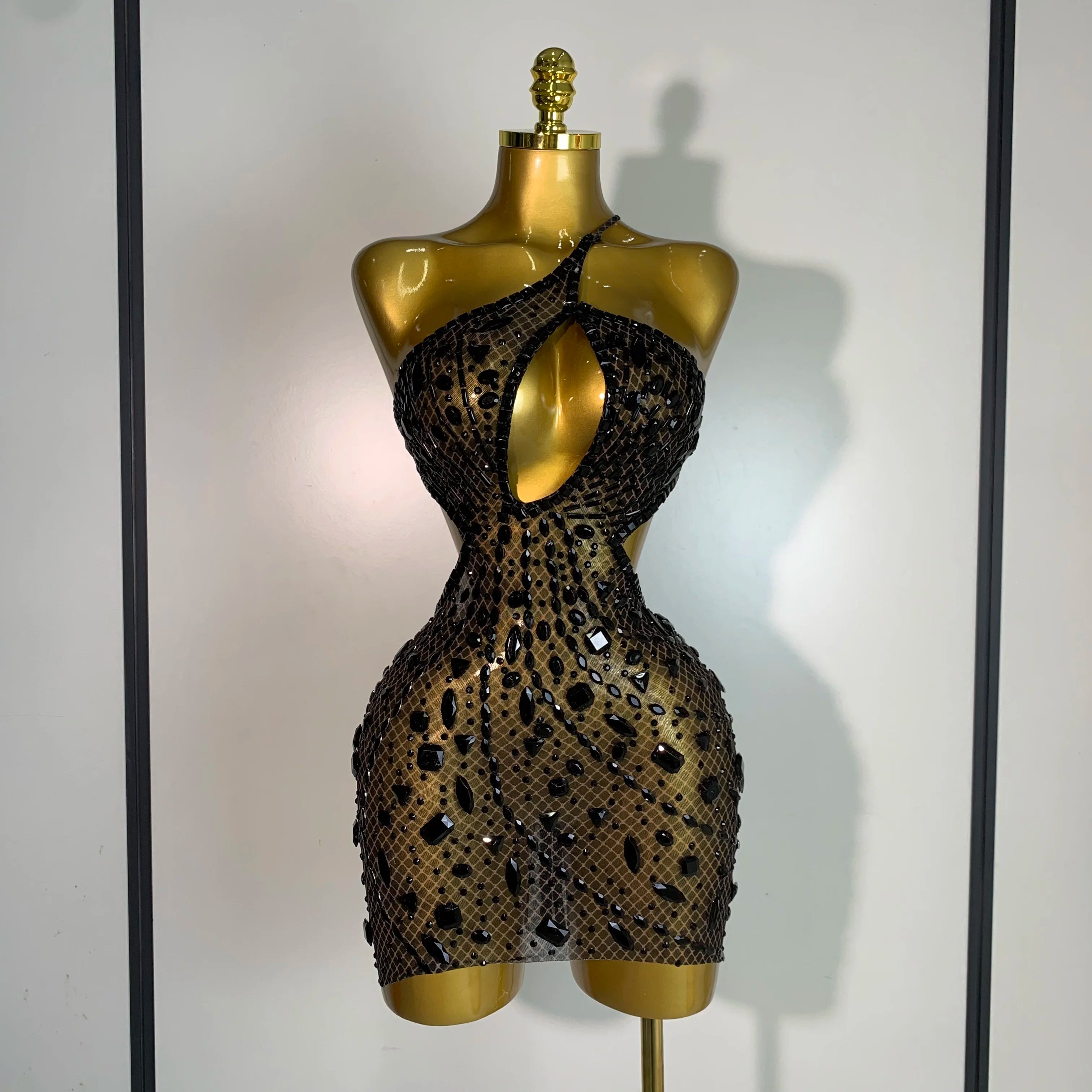 Women Sexy Backless Hollow Out Diamond Evening Prom Gown Birthday Luxury Celebrate Stage Nightclub Outfit
