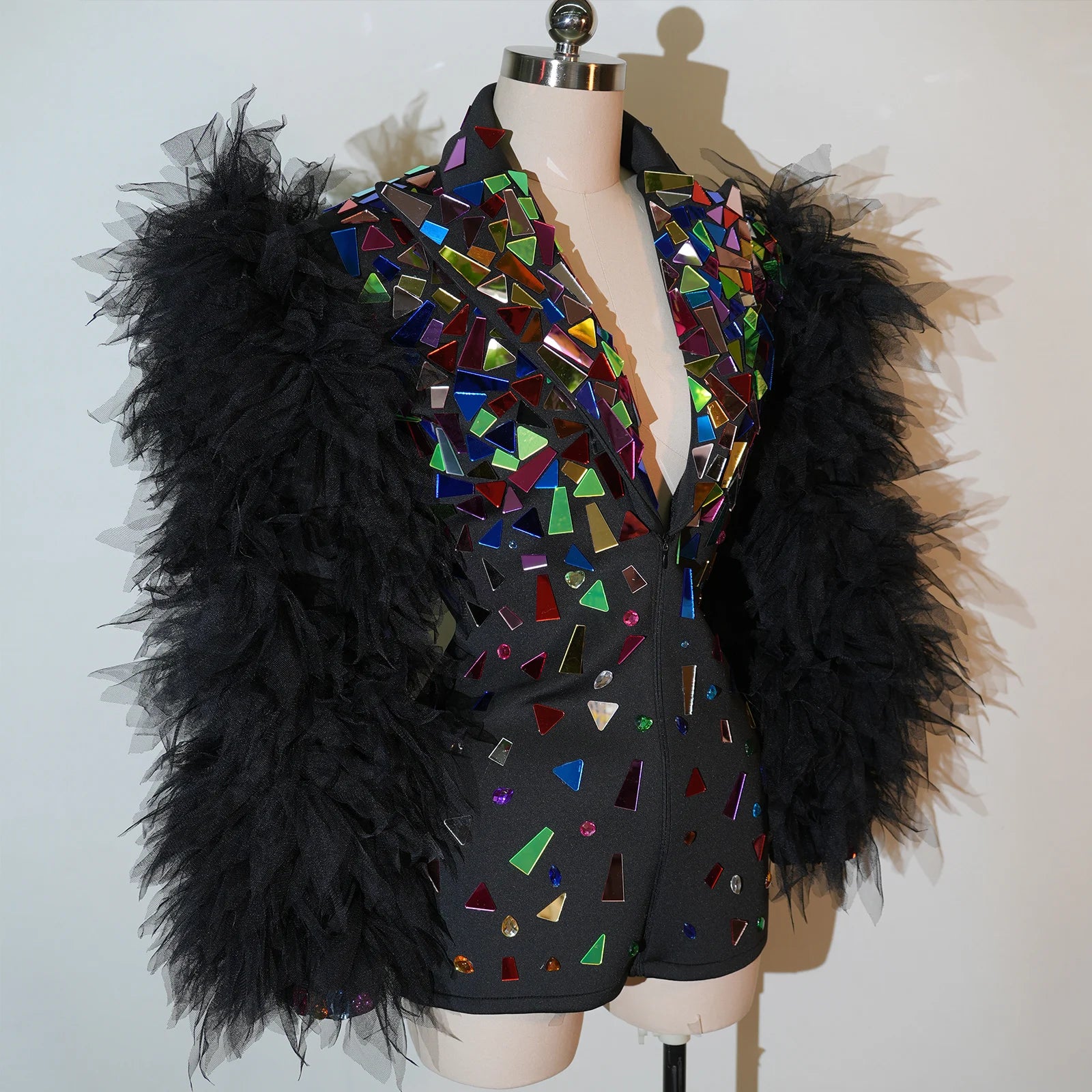 Sparkling Mirrors Women's Party Dresses Deep V Neck Nightclub DJ Gogo Dancers Costumes Birthday Show Drag Queen Singer Stage