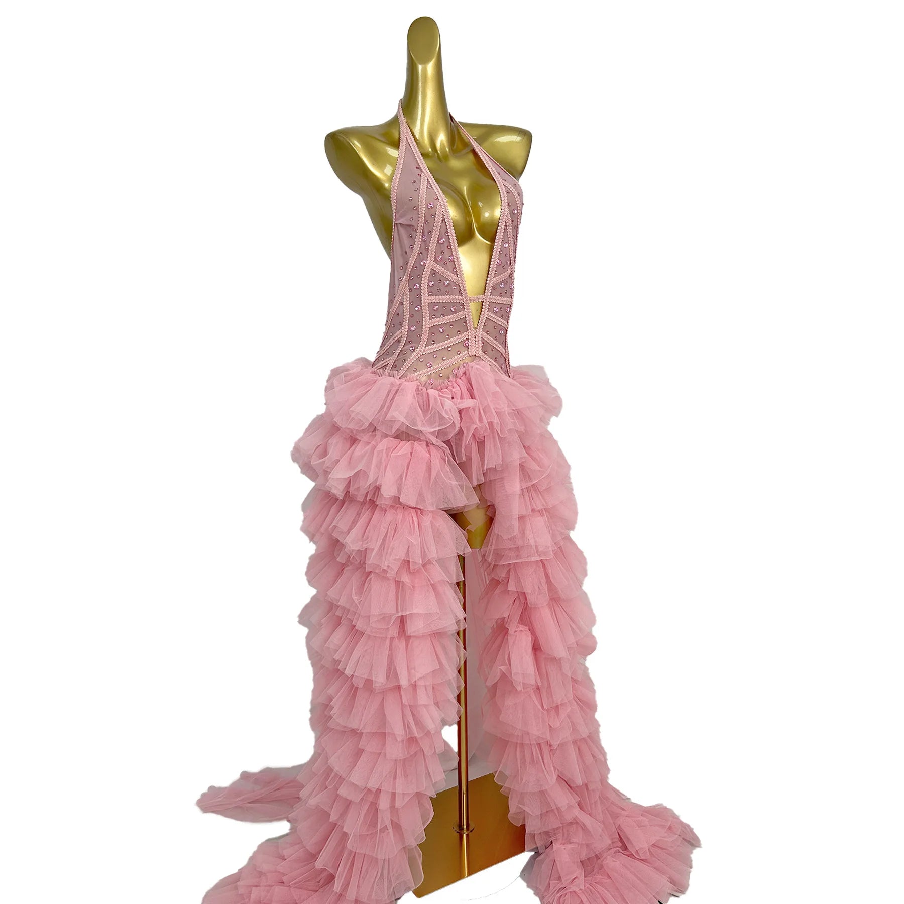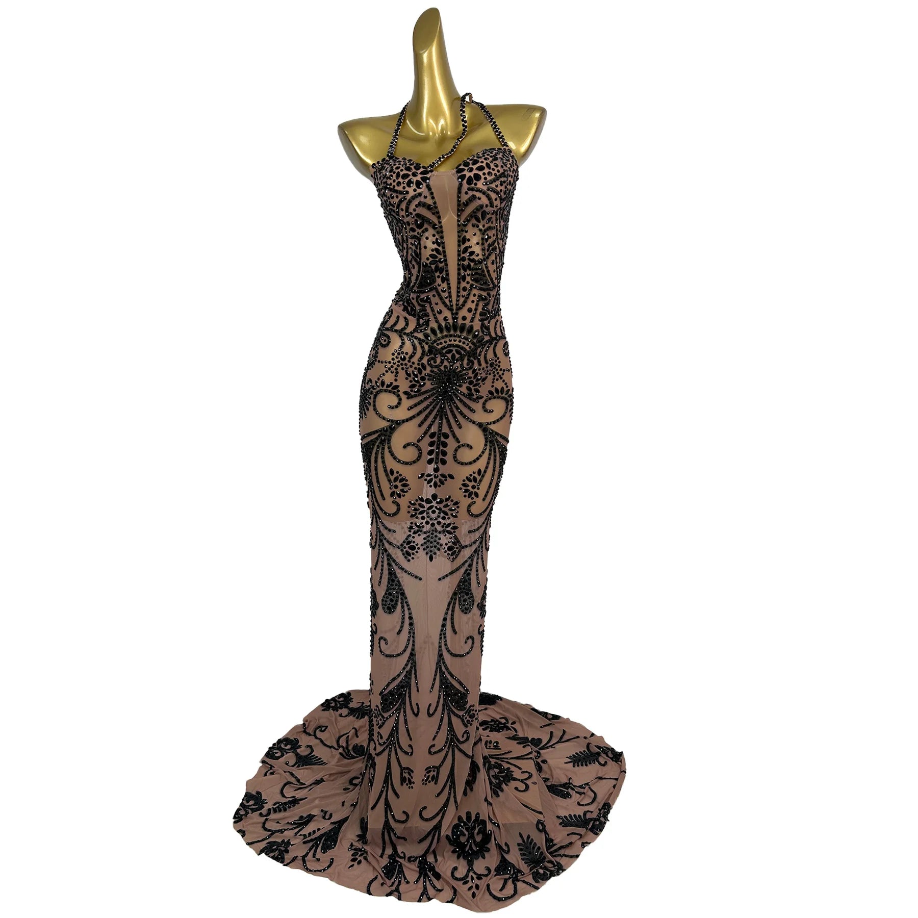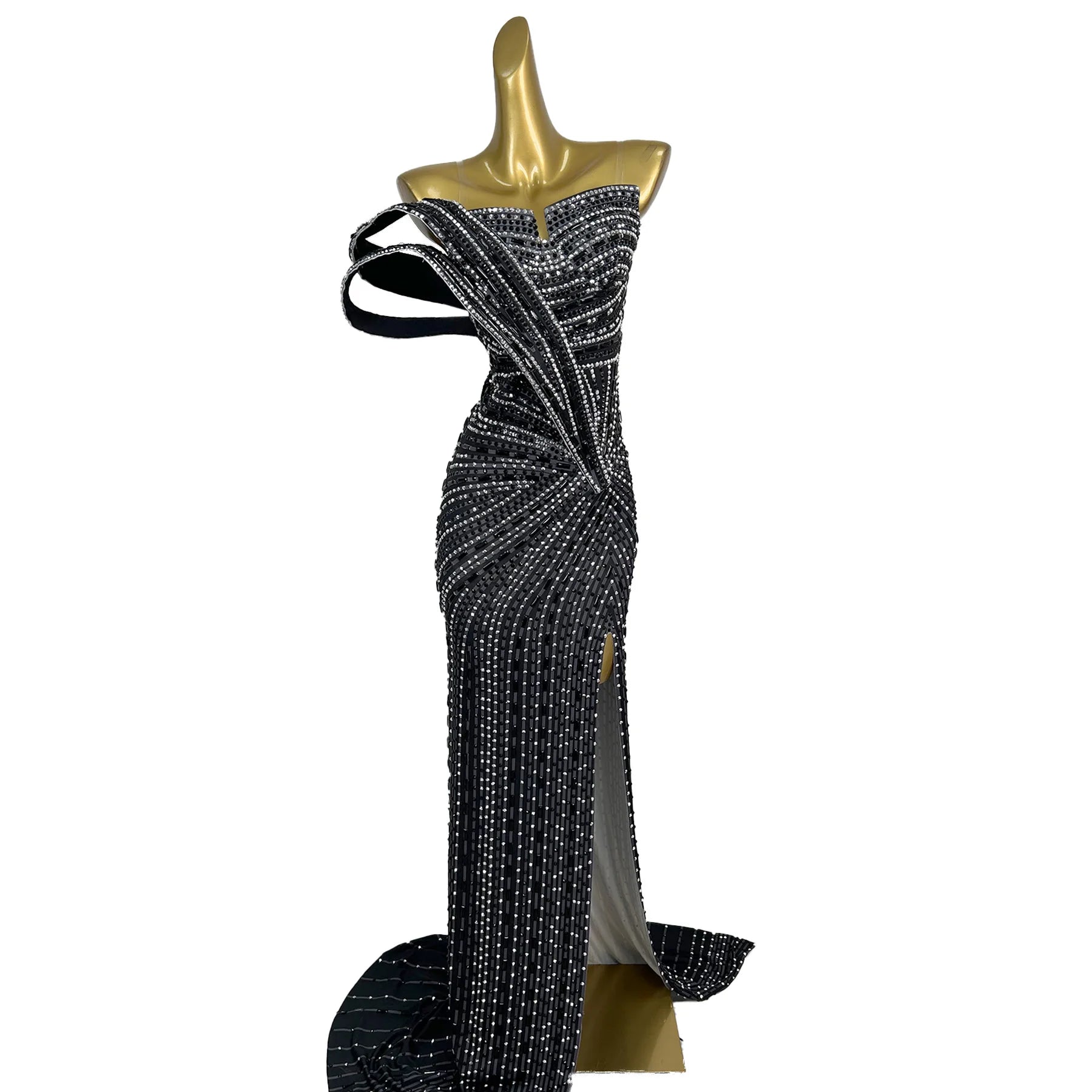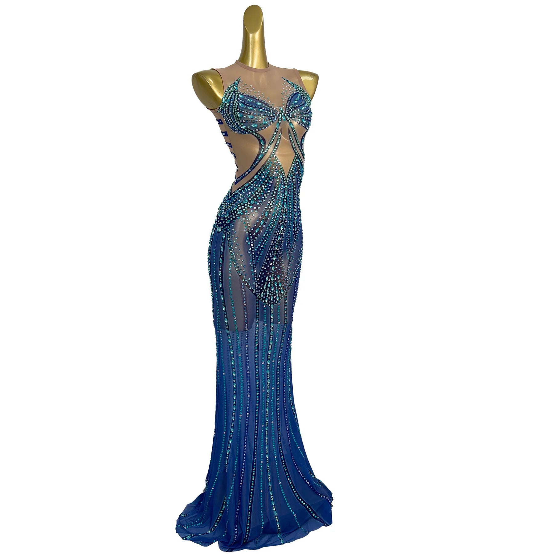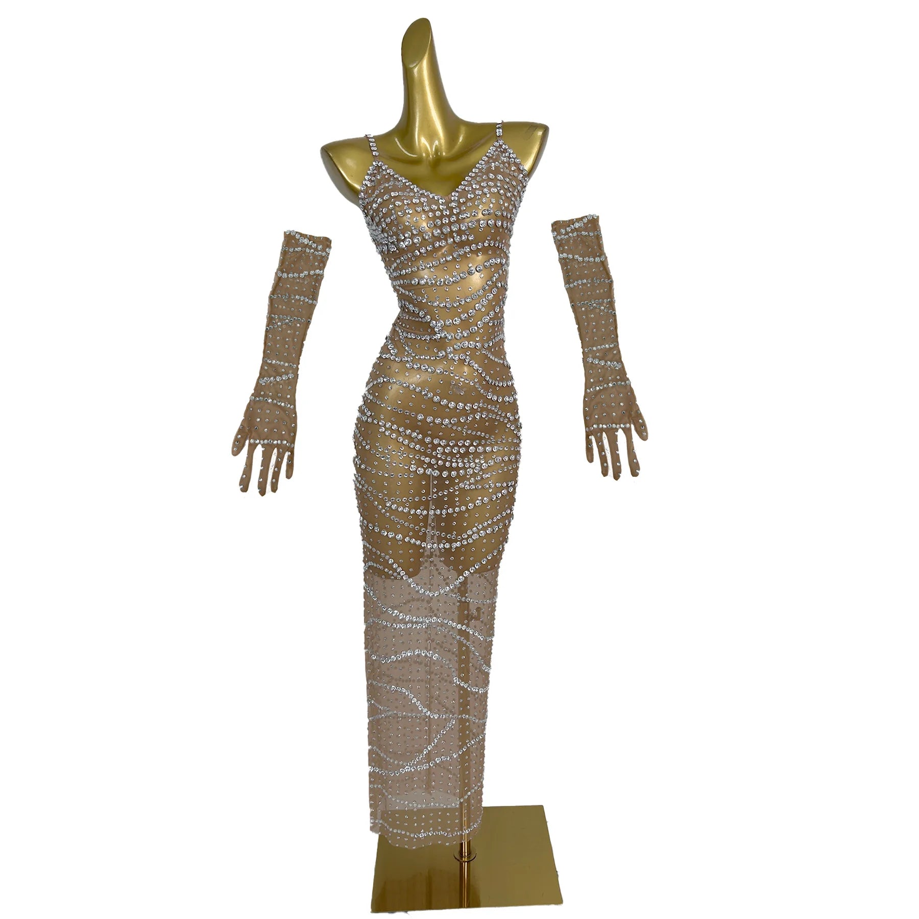 Sexy Party Banquet Evening Dresses Women Sparkly Rhinestone Long Dress Nightclub Singer Stage Costume Festival Clothing