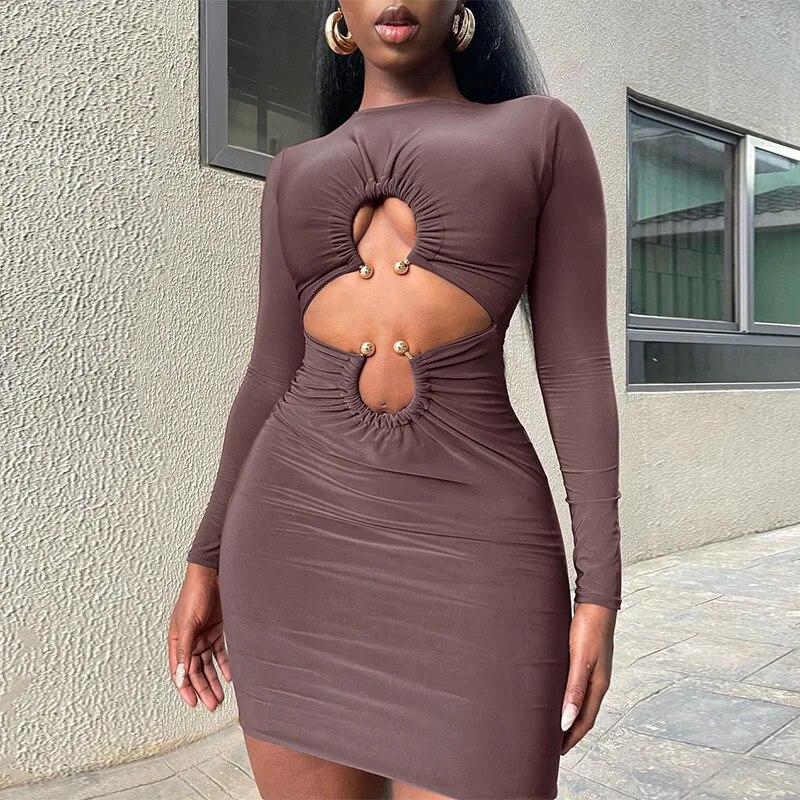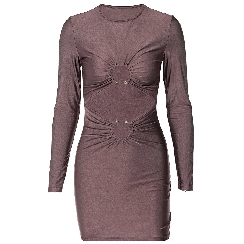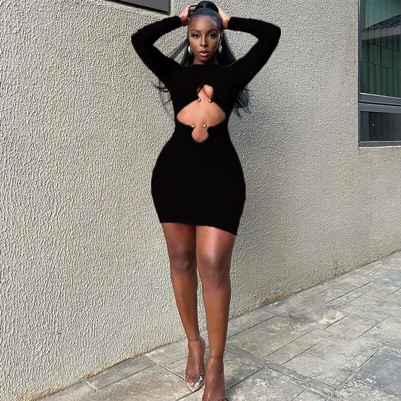 Summer Long Sleeve Sexy Tight Ring Cut-out Bare Navel Dress Solid Color Hollow Vacation Womne Outoutfits