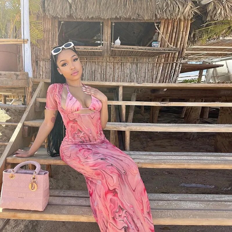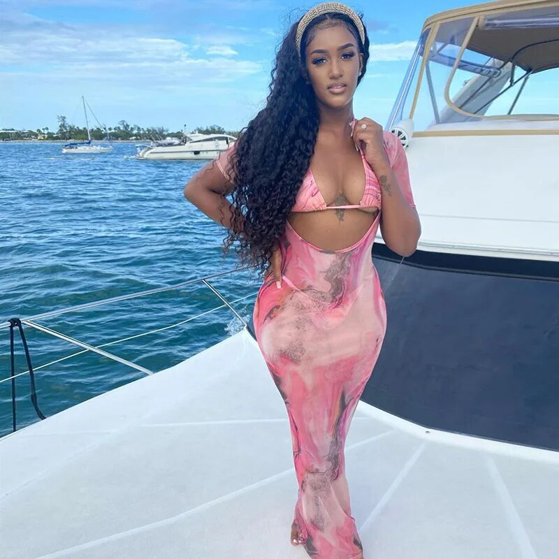 Tie Dye Print Bodycon Dress Sexy Midi Dresses Short Sleeve Hollow Out Beach Vacation Outfits