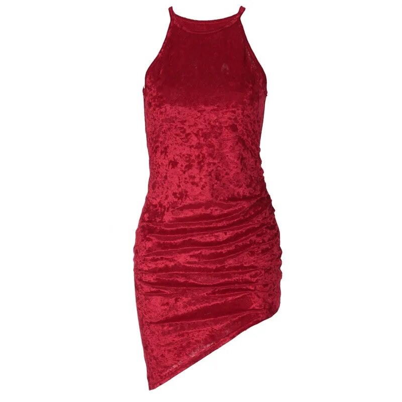 Women Halter Slim Sexy Velvet Dress Red Party Mini Dress Summer Fashion