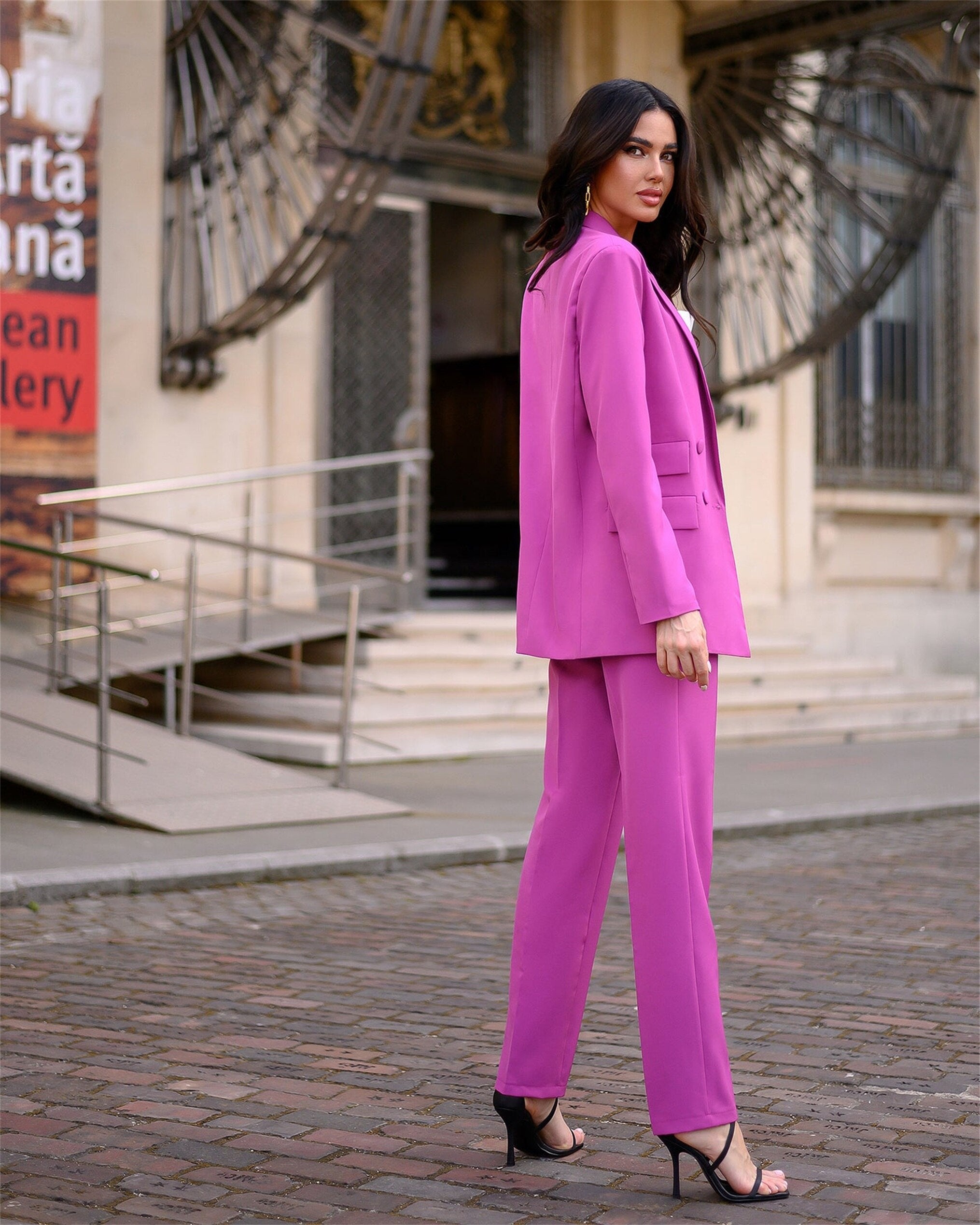 2 Pcs Lady Business Suits Long Sleeve Double Breasted Turn-down Collar Solid Color High Waist Blazer Pants Suit