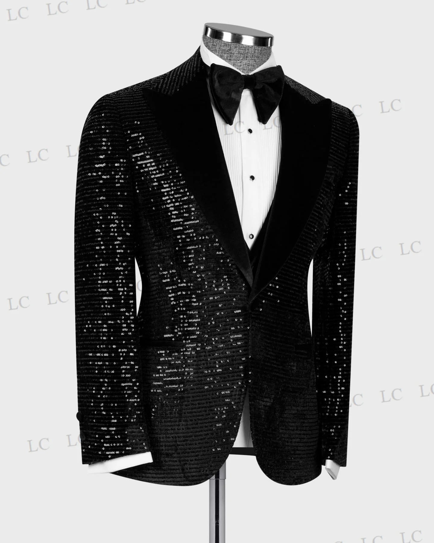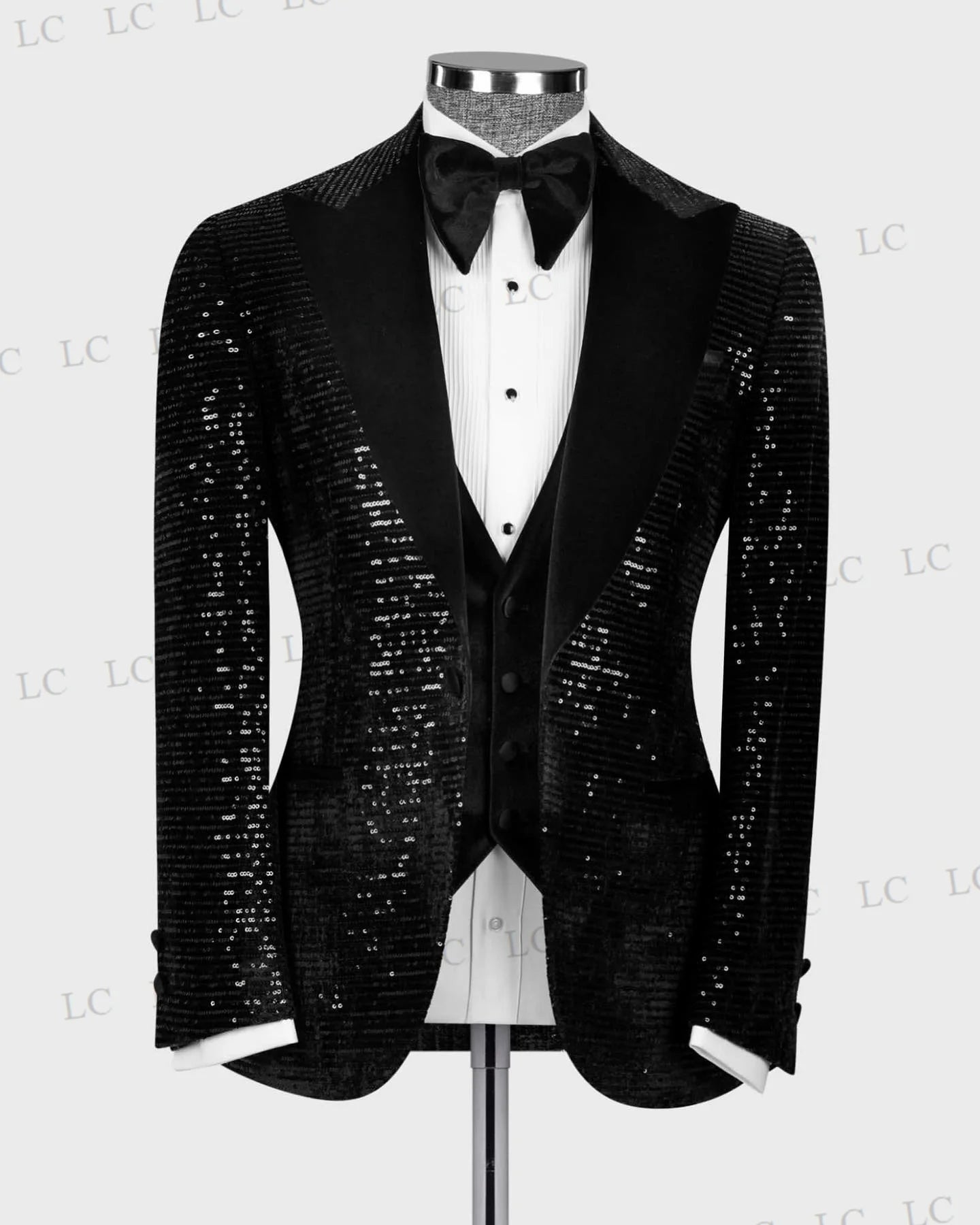 This luxurious men's suit set features a 2-piece ensemble with sequin embellishments for a glamorous and eye-catching look. The set includes a blazer, vest, and pants with a one-button design and velvet lapel, perfect for prom, weddings, and as a groom outfit. The sparkly sequins add a touch of sophistication and style to the ensemble. Available in plus sizes, this suit is a stylish choice for men looking for a statement piece that exudes luxury and elegance at any special occasion.