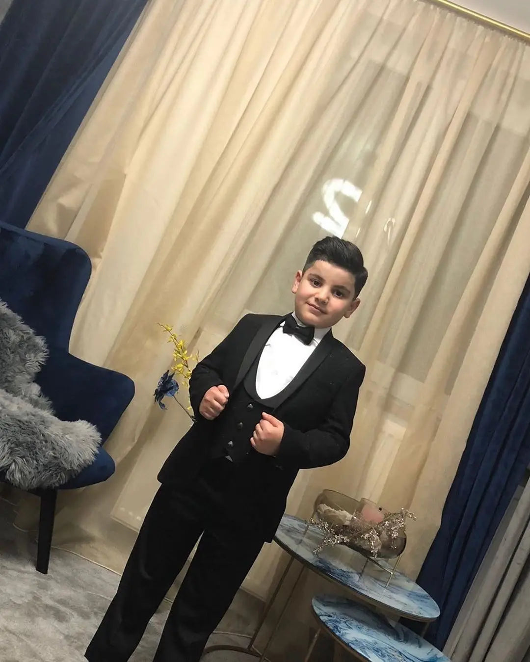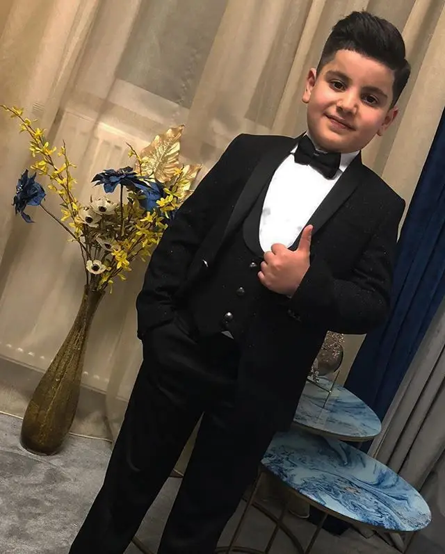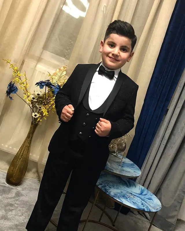 New Black Kids Wedding Tuxedos 3 Pieces Shawl Lapel Pants Suits Boy's Formal Wear(Jacket+vest+Pants)