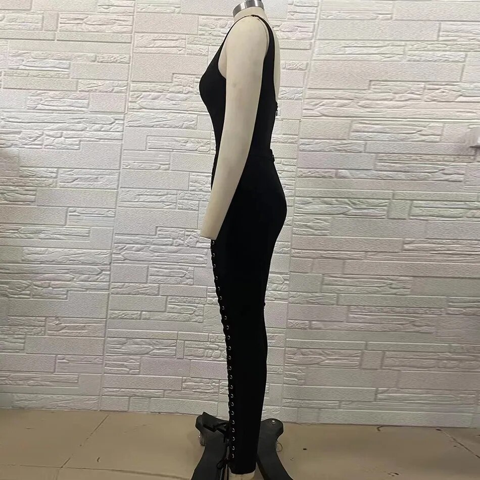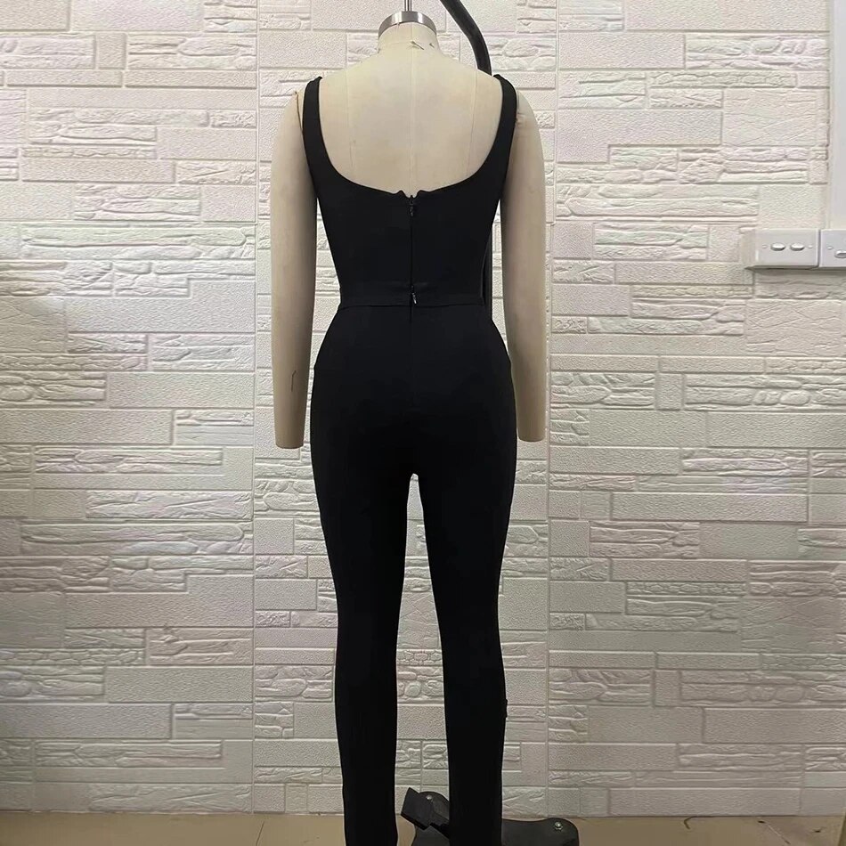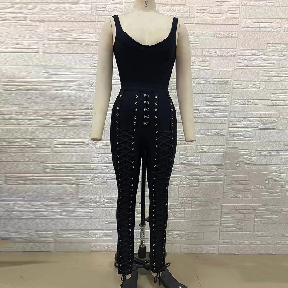Women's Bodycon Rayon Bandage Two-piece Sleeveless Top and Two-Tie High Waist Pencil Pants Set Celebrity Party Wear