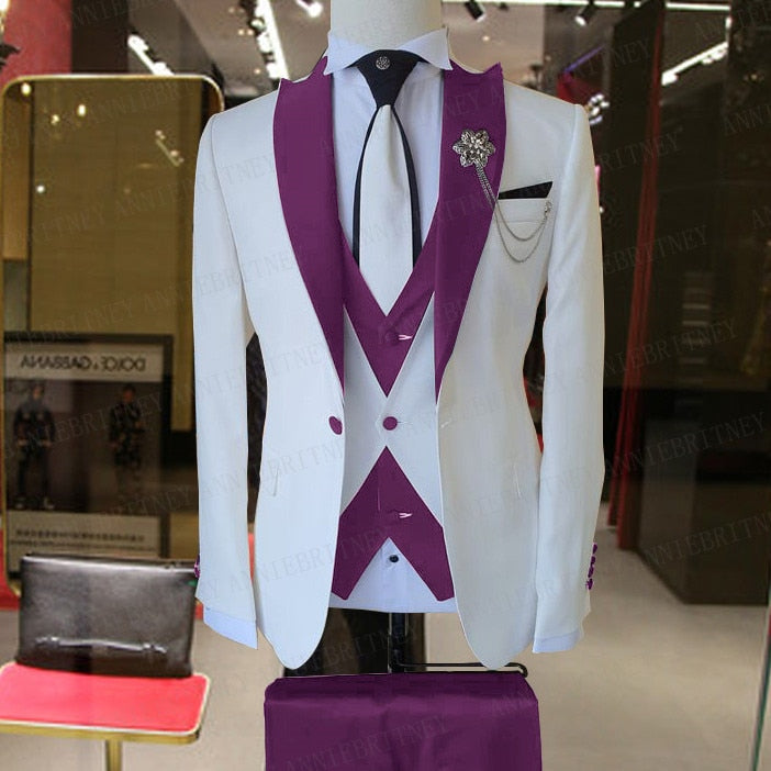 3 Pieces Groom Wedding Suits Men Blazer Sets White Business Jacket Vest Royal Blue Pants Dress Tuxedo