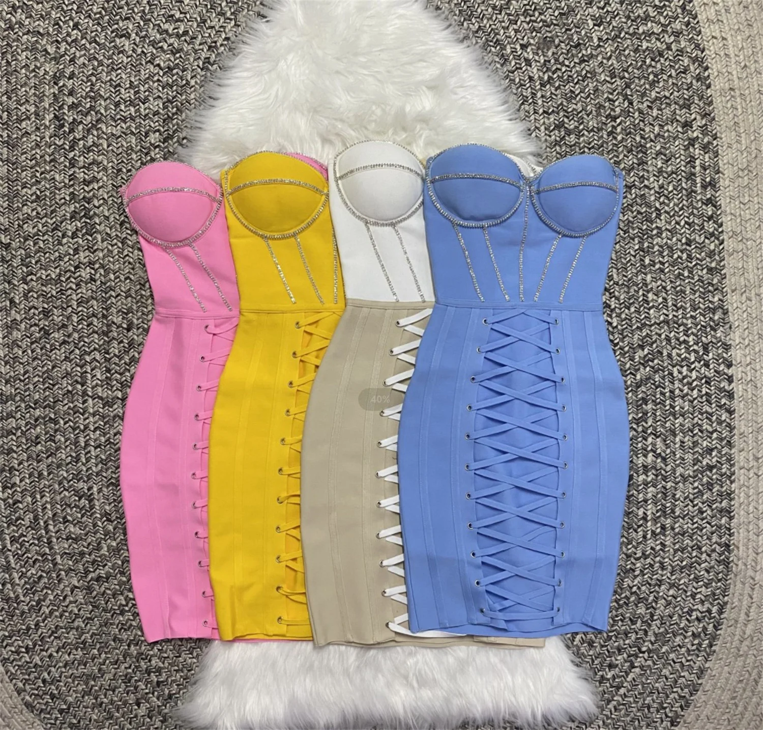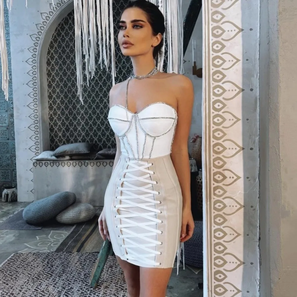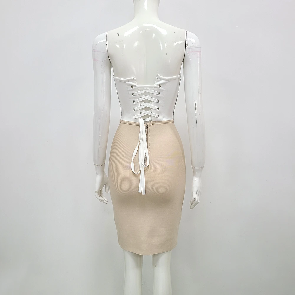 Summer Pink White Sexy Sleeveless Strapless Dress Rayon Bandage Nightclub Party Bodycon Mini Outfit Vestido