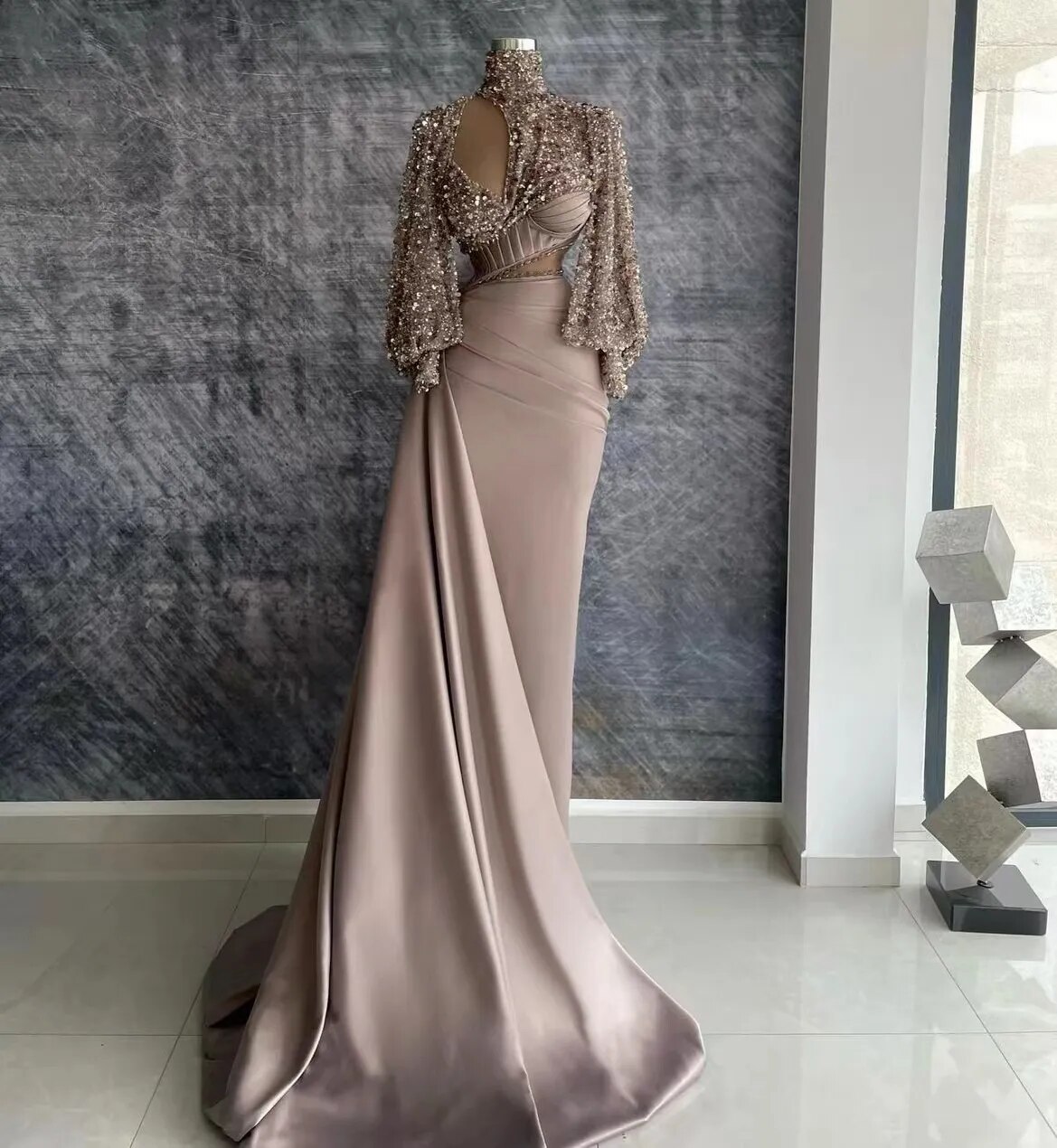 Celebrity With Cape Ruched Sweetheart Prom Party Women Gowns Robe Soirée Arabic Glitter Sequins Evening Dresses Long Luxury