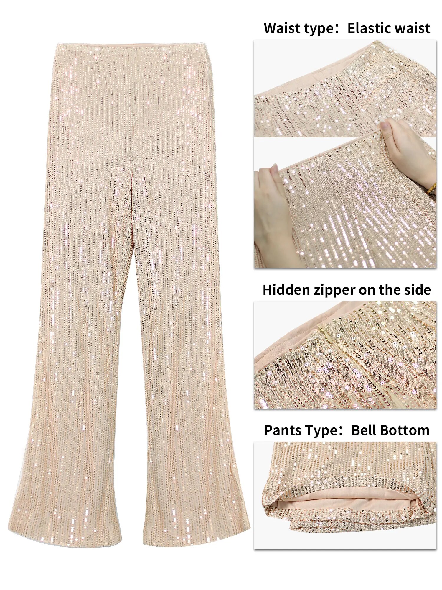 Elegant Lady Glitter High Waist Wide Leg Sequin Pants Women Bling Length Sparkling Flared Trousers Party Clubwear Champagne