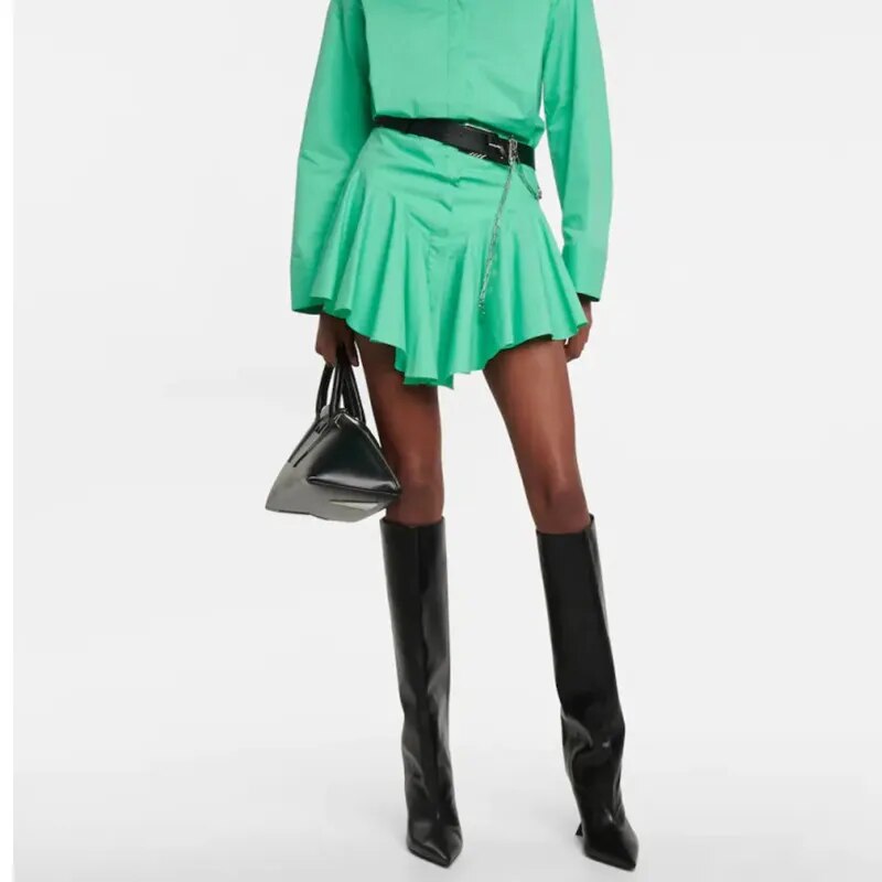 Women's Knee Length Boots Fashion Pointed Shaped High Heels Women's Large Sleeve Boots
