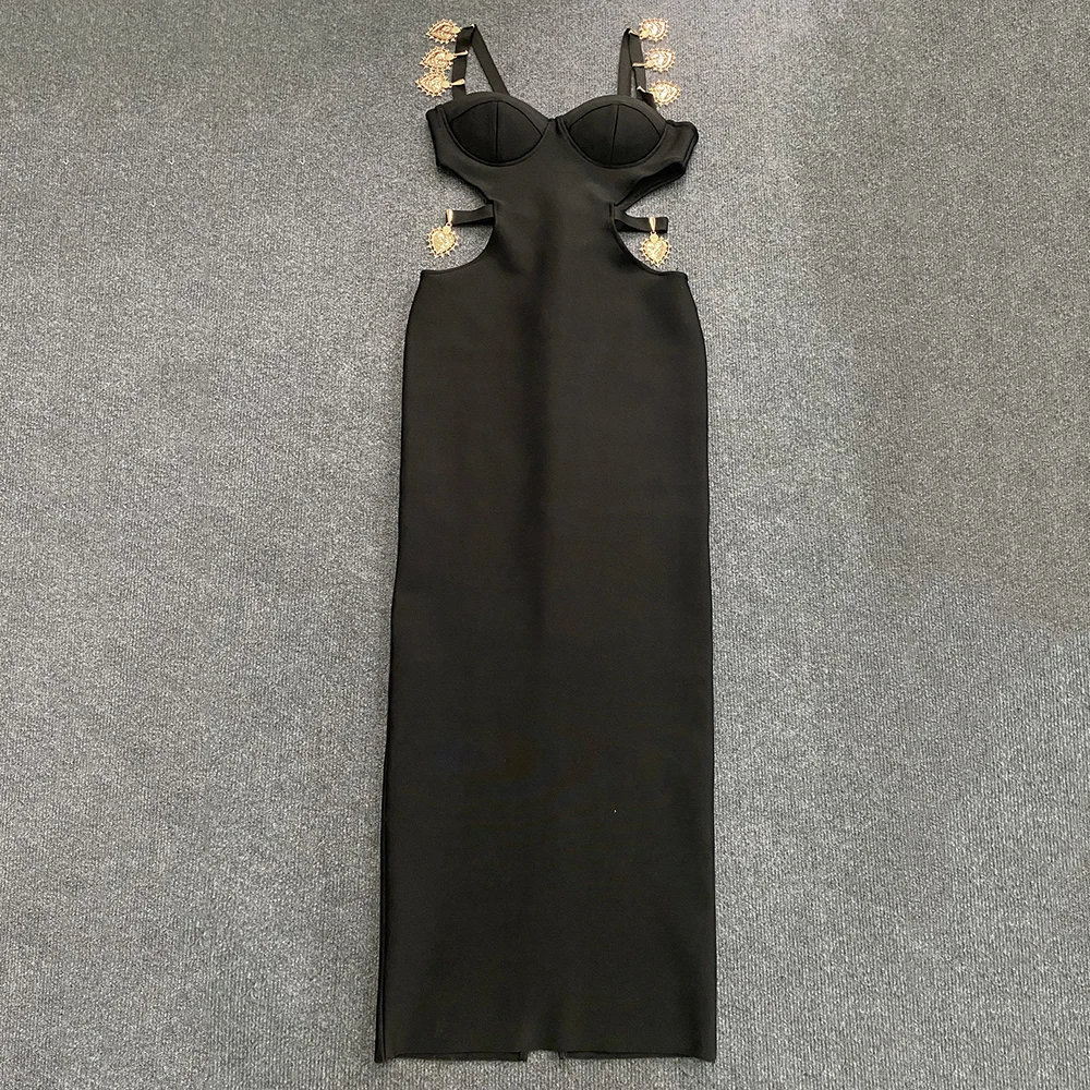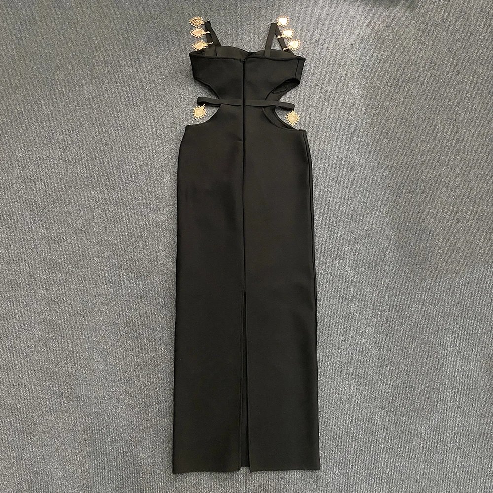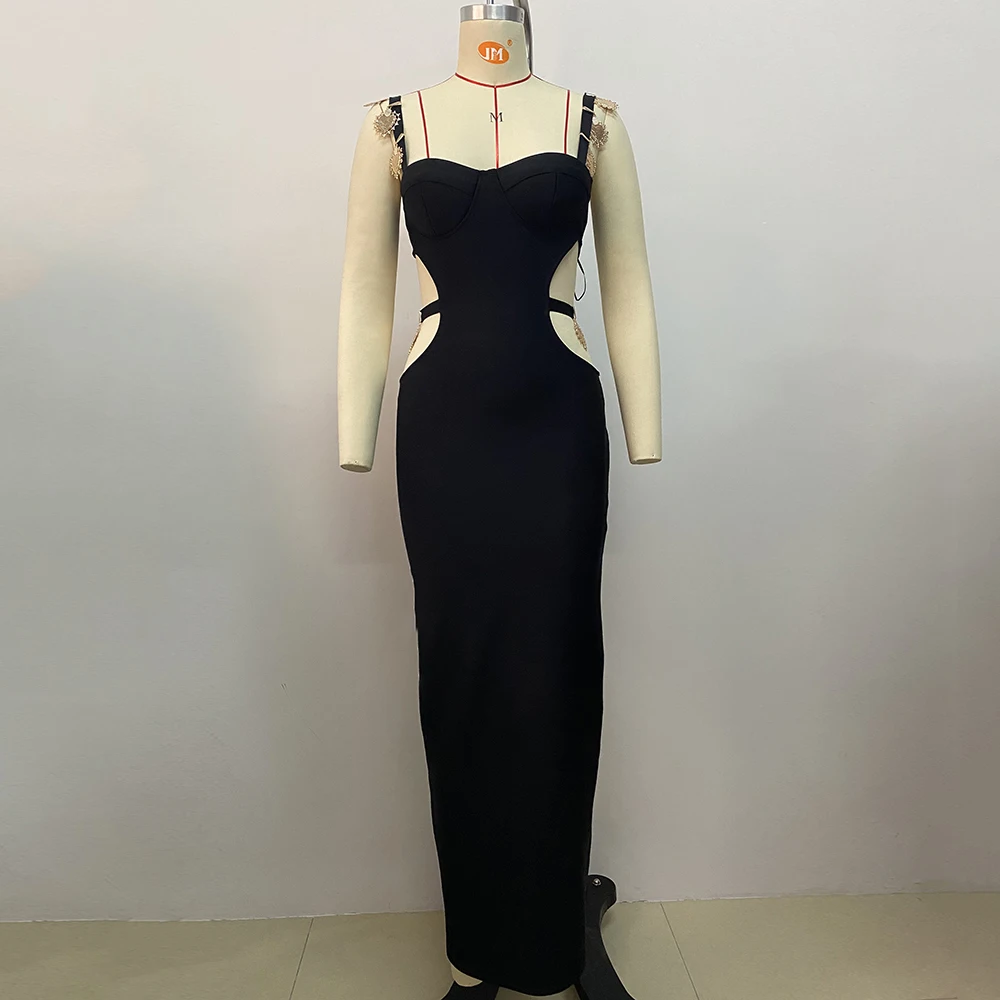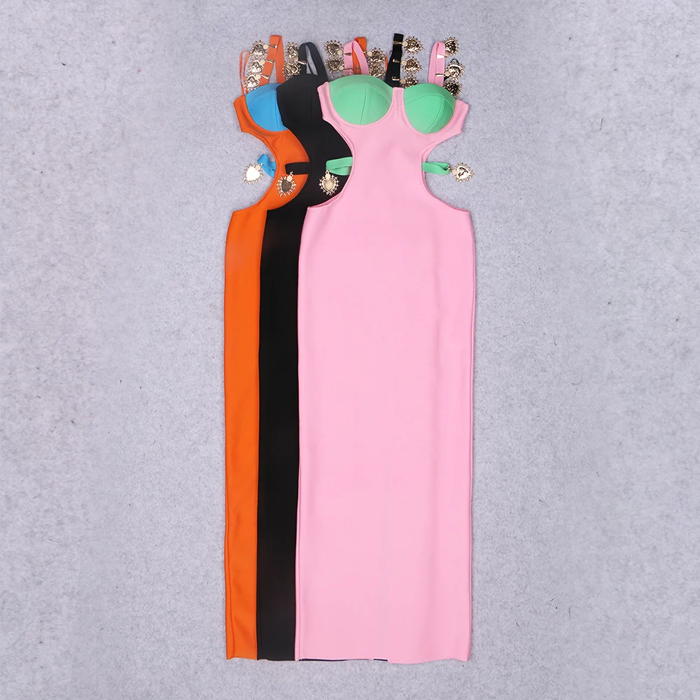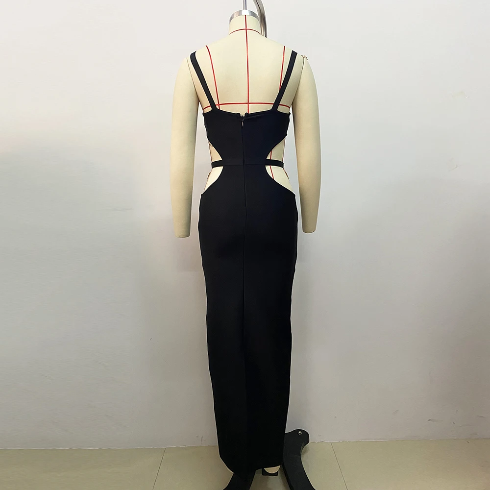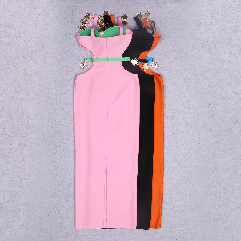 Summer Colorant Match Black Orange Pink Color Sexy Hollow Out Rayon Bandage Celebrating Birthday Nightclub Long Dress