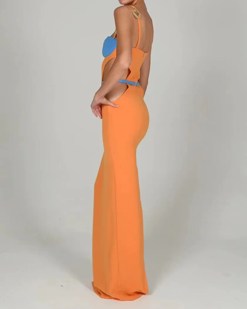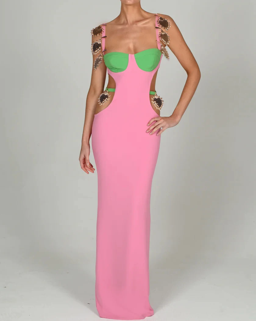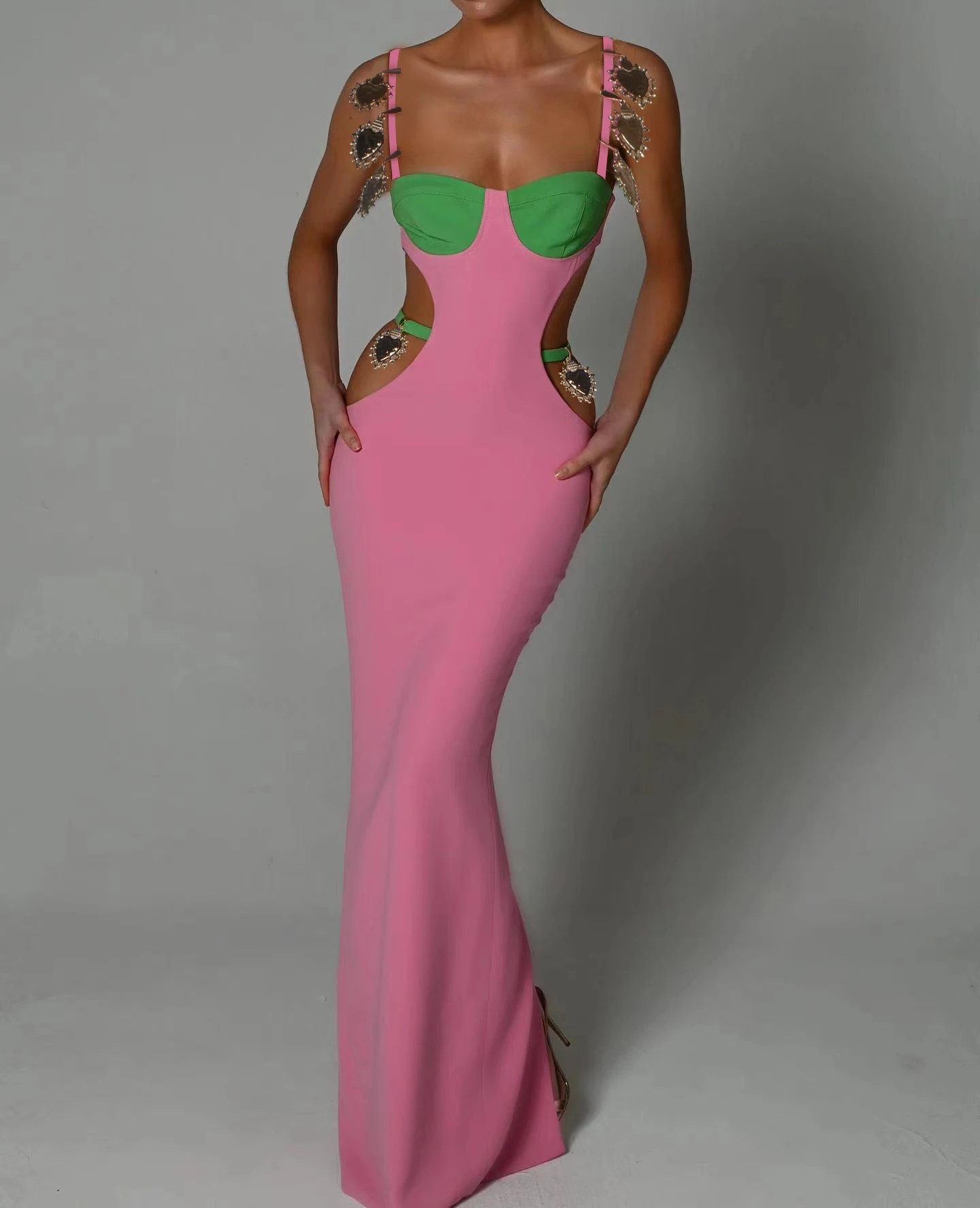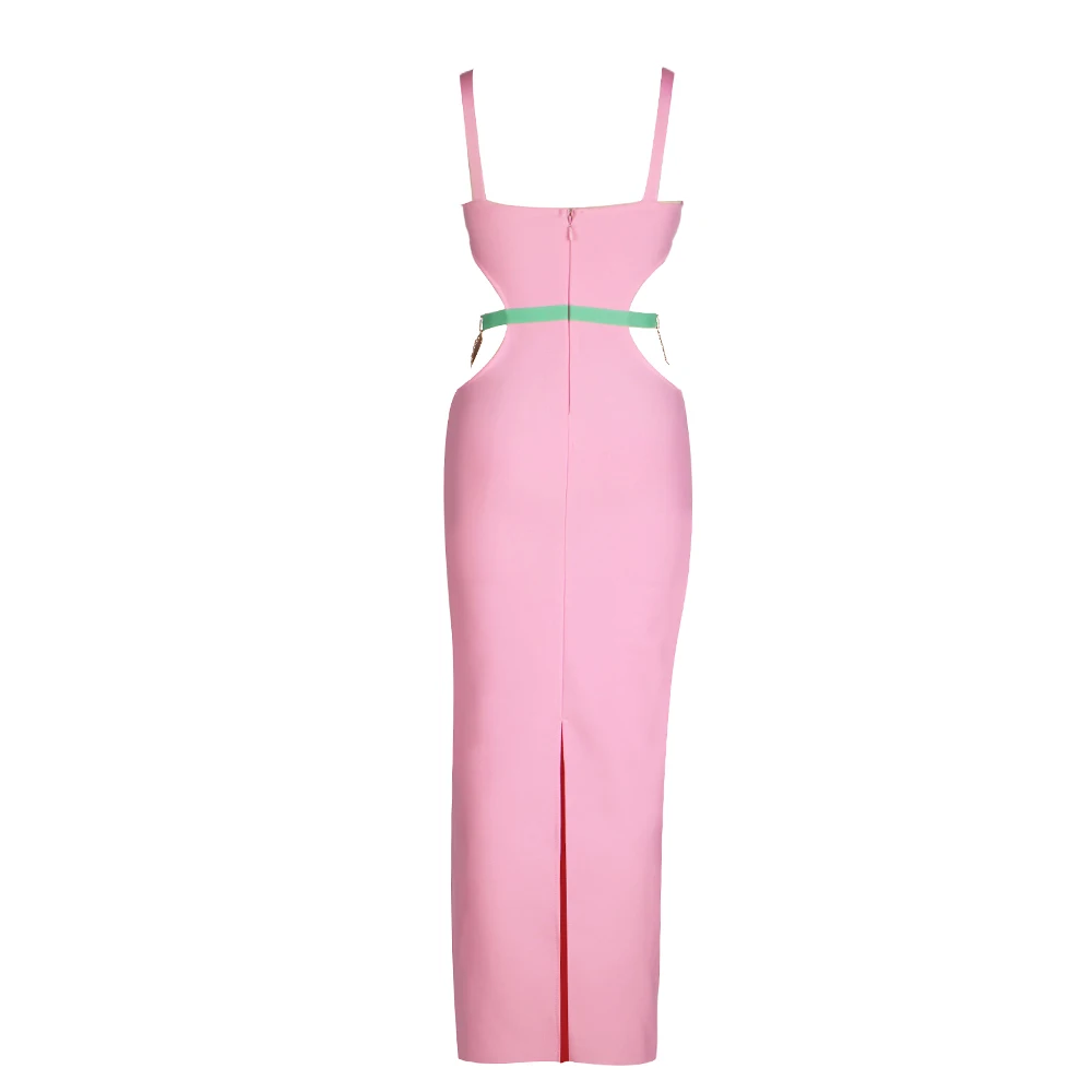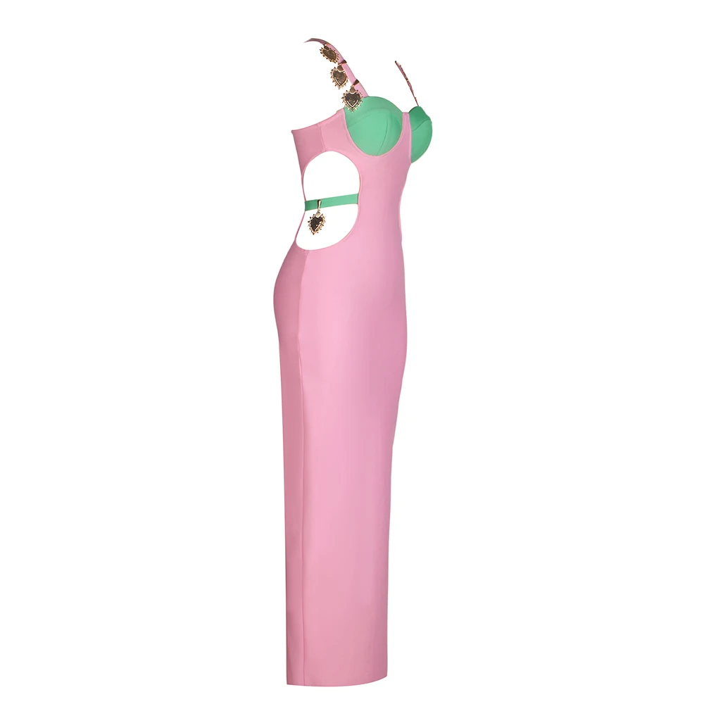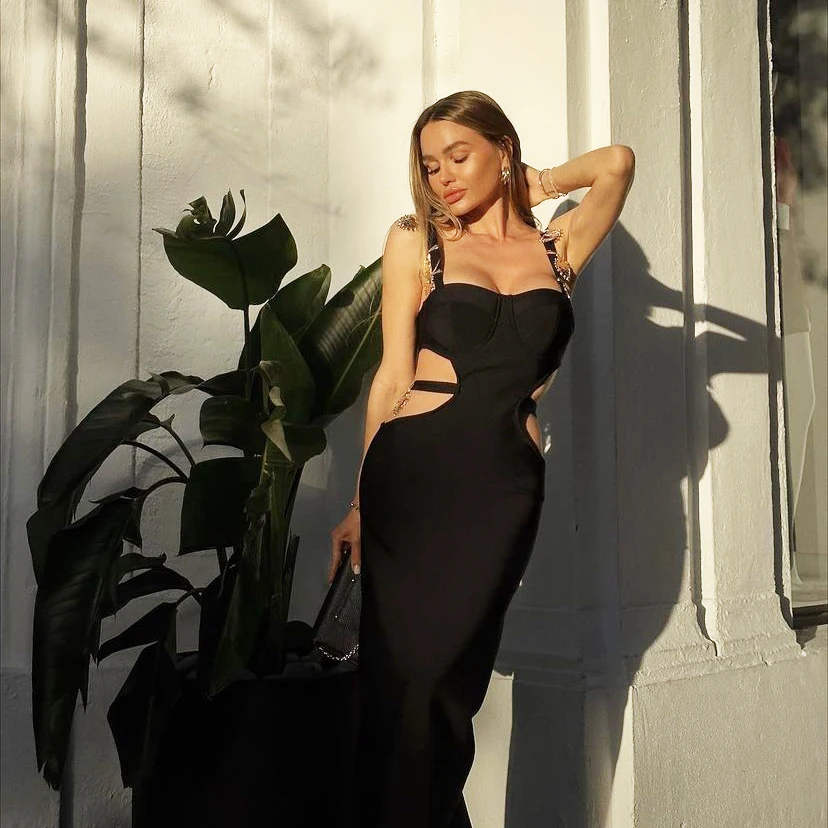 Summer Colorant Match Black Orange Pink Color Sexy Hollow Out Rayon Bandage Celebrating Birthday Nightclub Long Dress