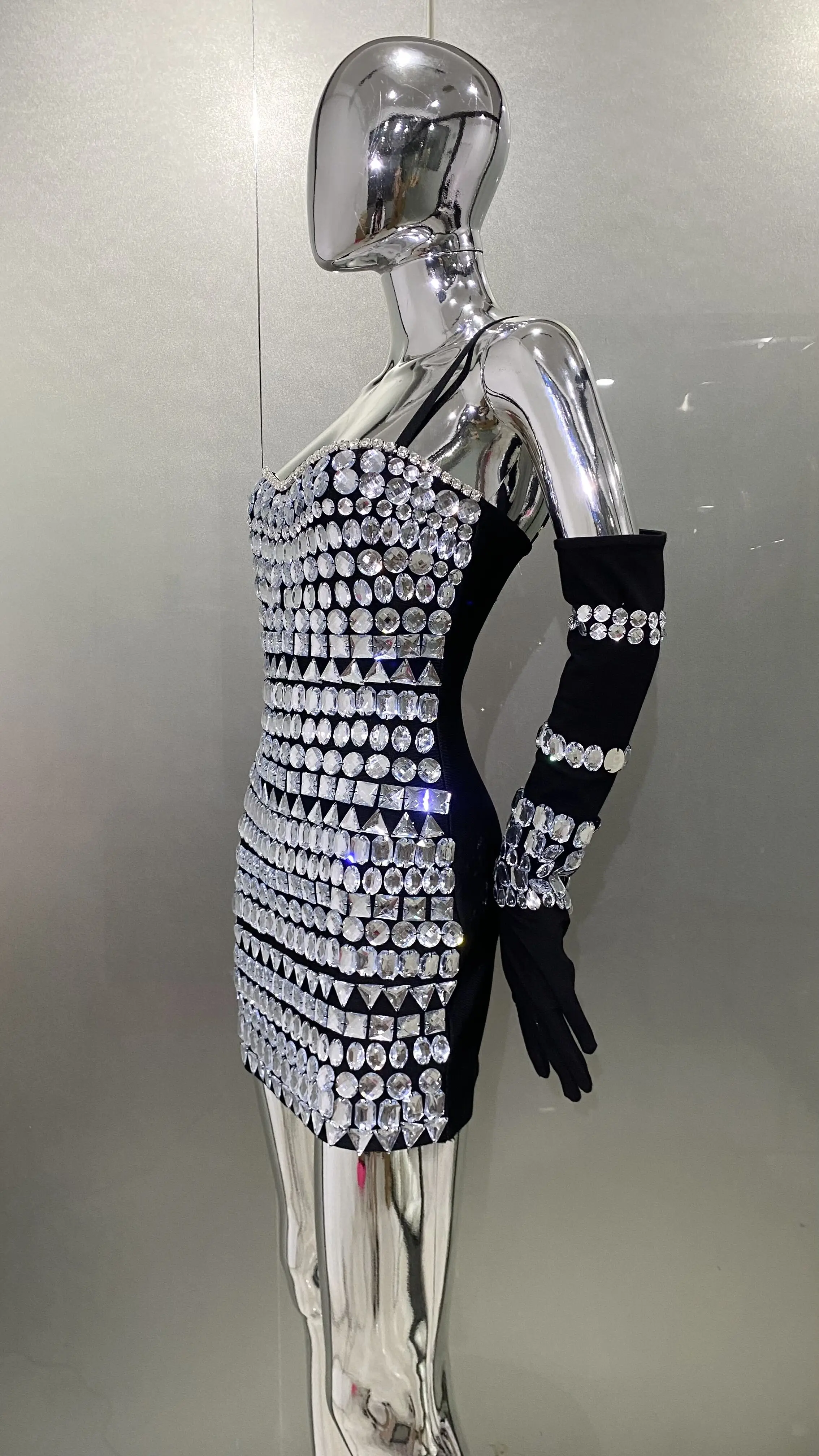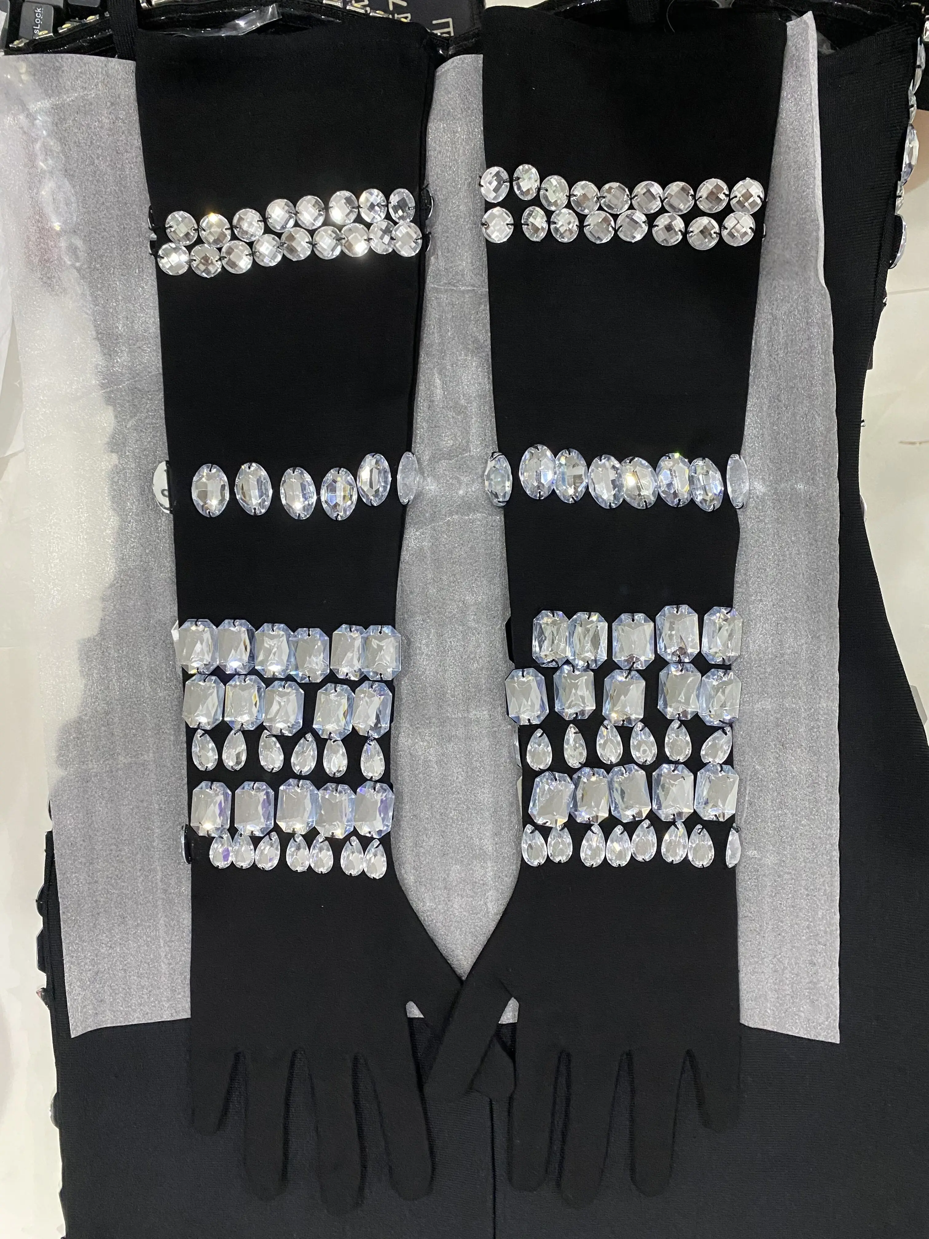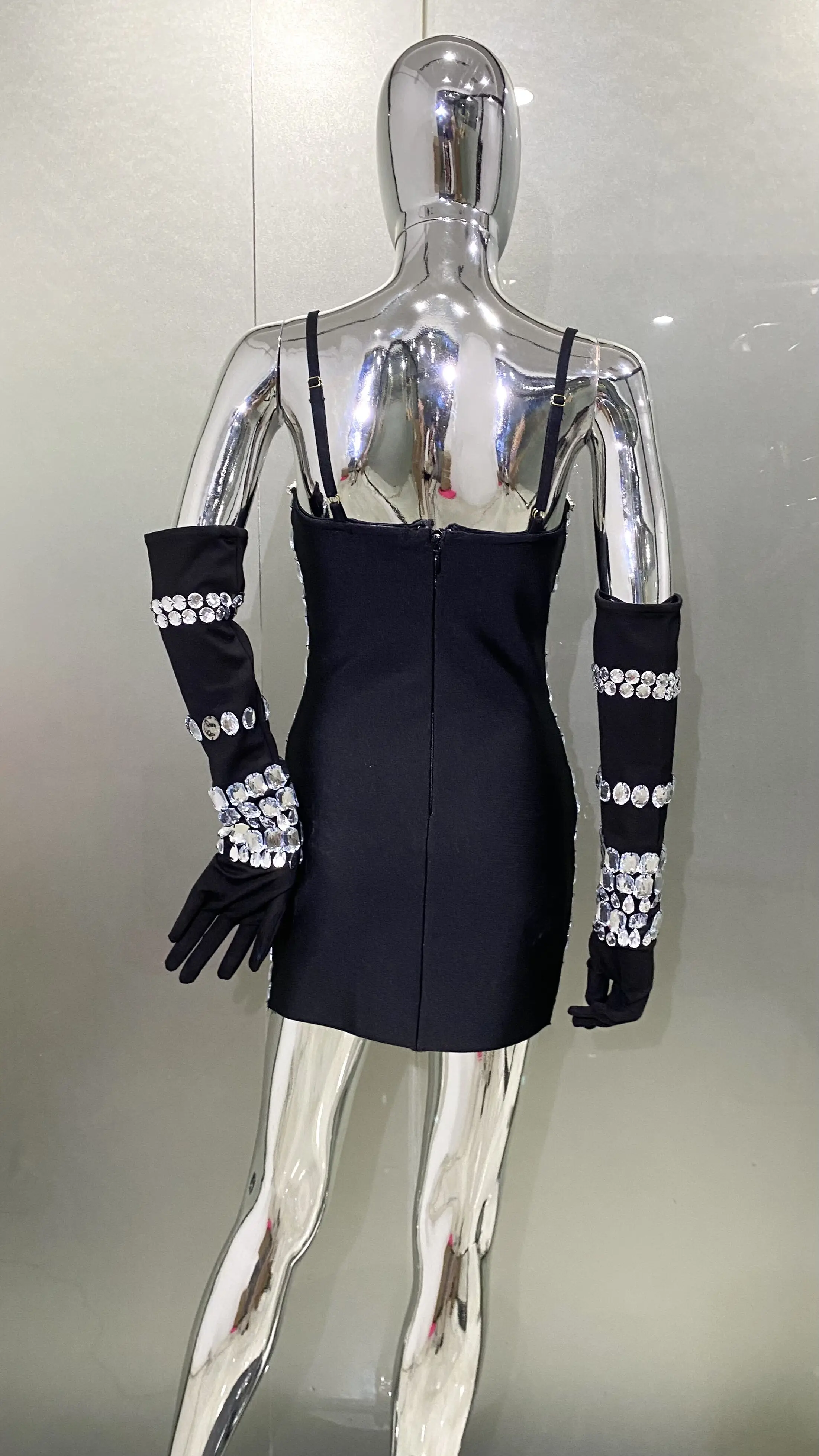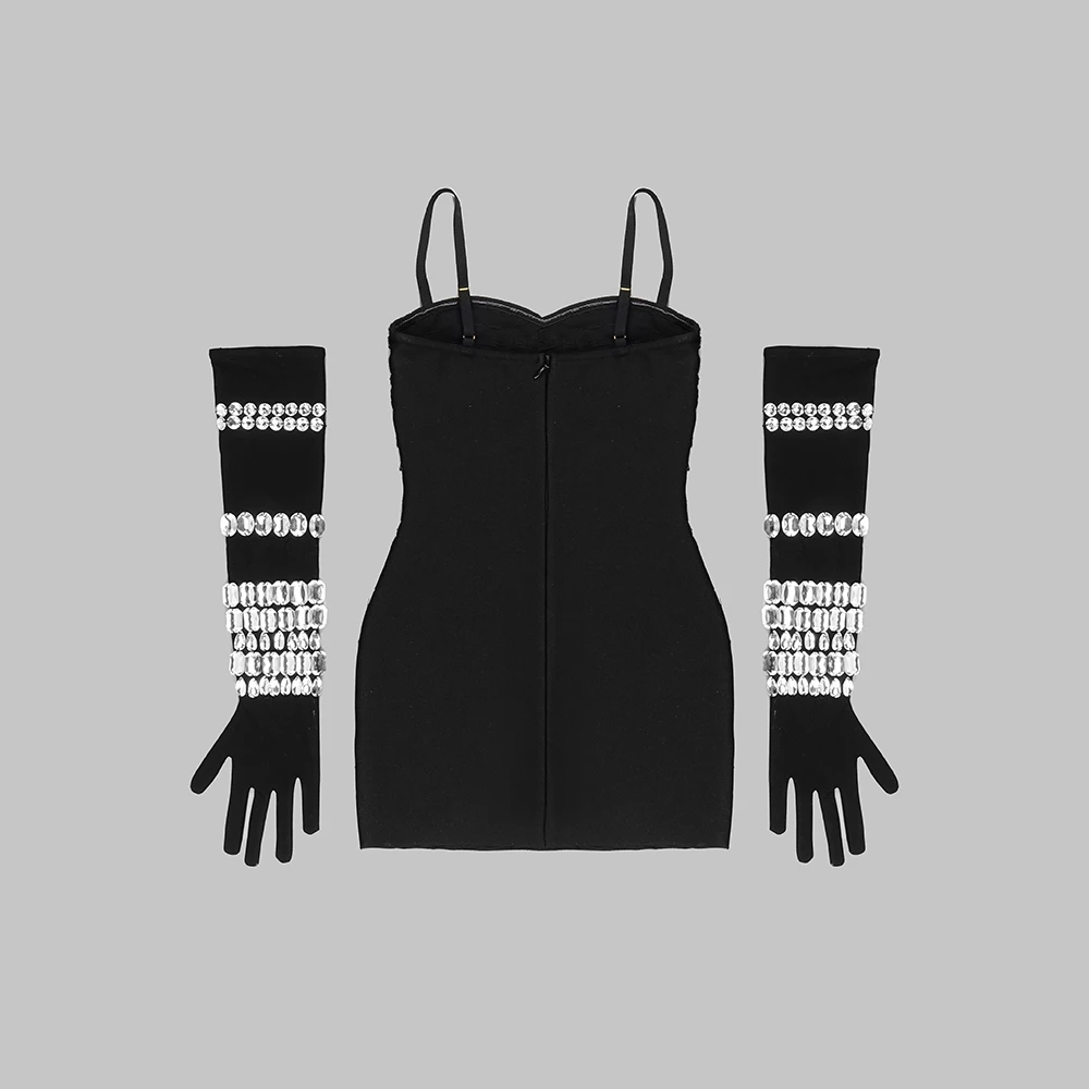 Summer Women Black Color Sleeveless Off-The-Shoulder Beading Sexy Spaghetti Strap Mini Evening Party Bodycon Jumpsuit