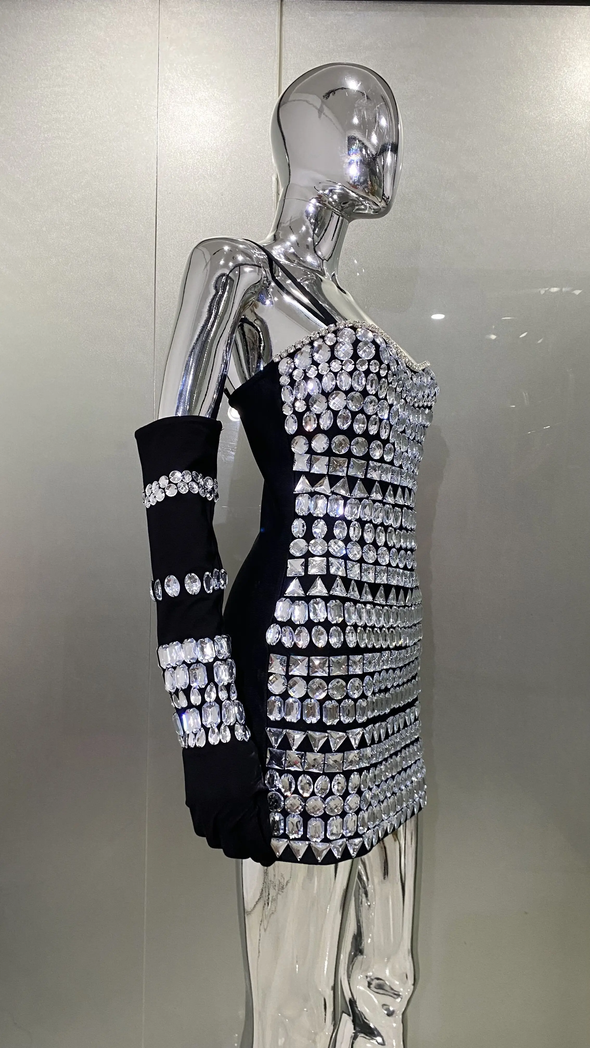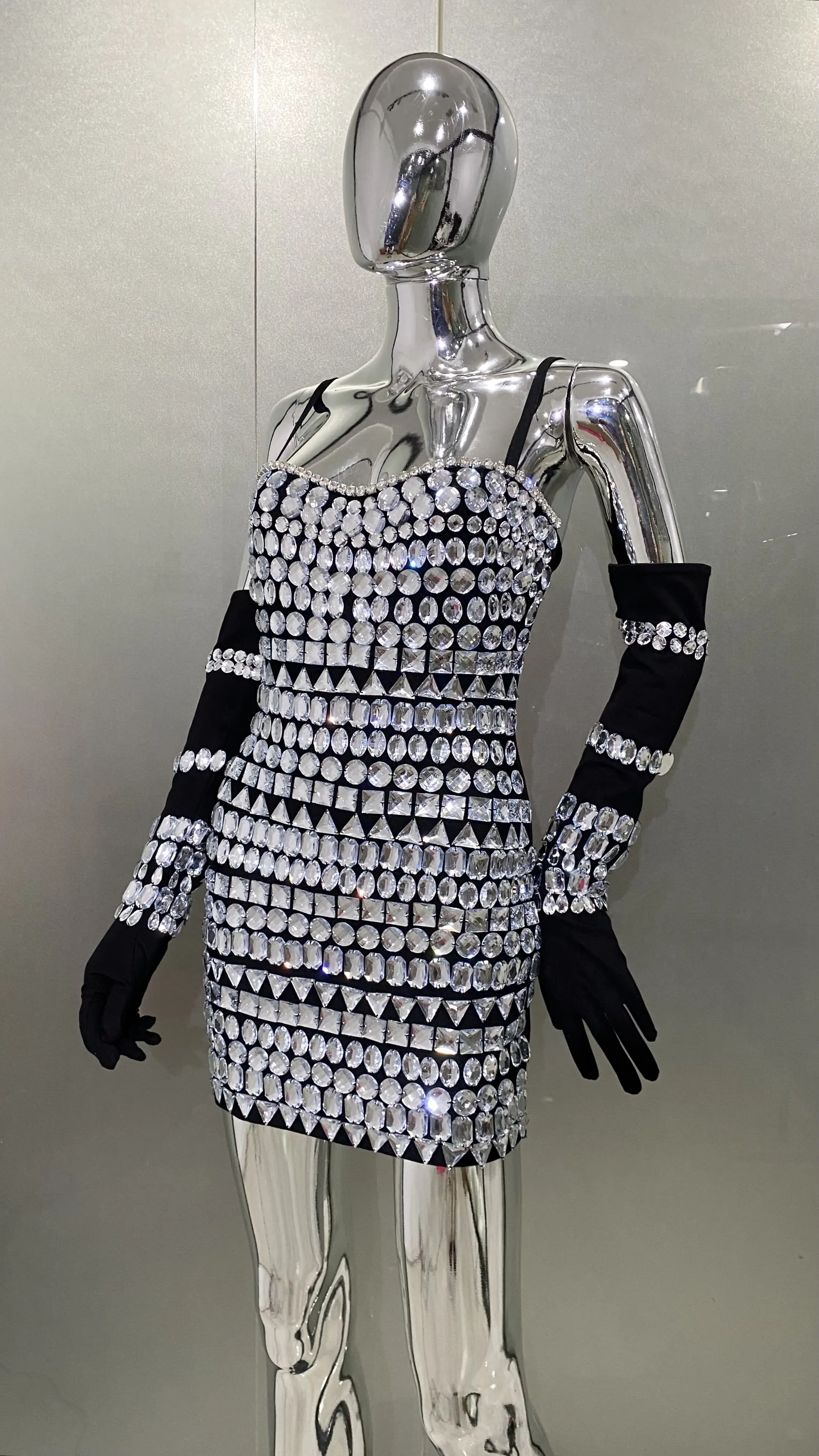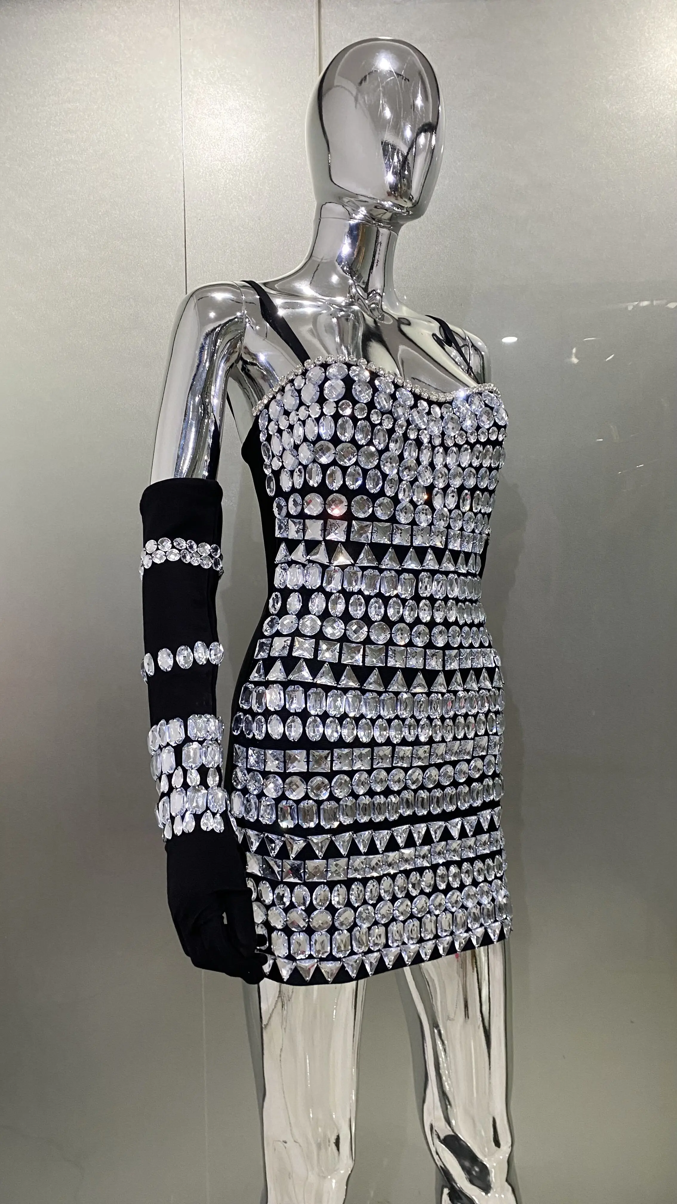 Summer Women Black Color Sleeveless Off-The-Shoulder Beading Sexy Spaghetti Strap Mini Evening Party Bodycon Jumpsuit