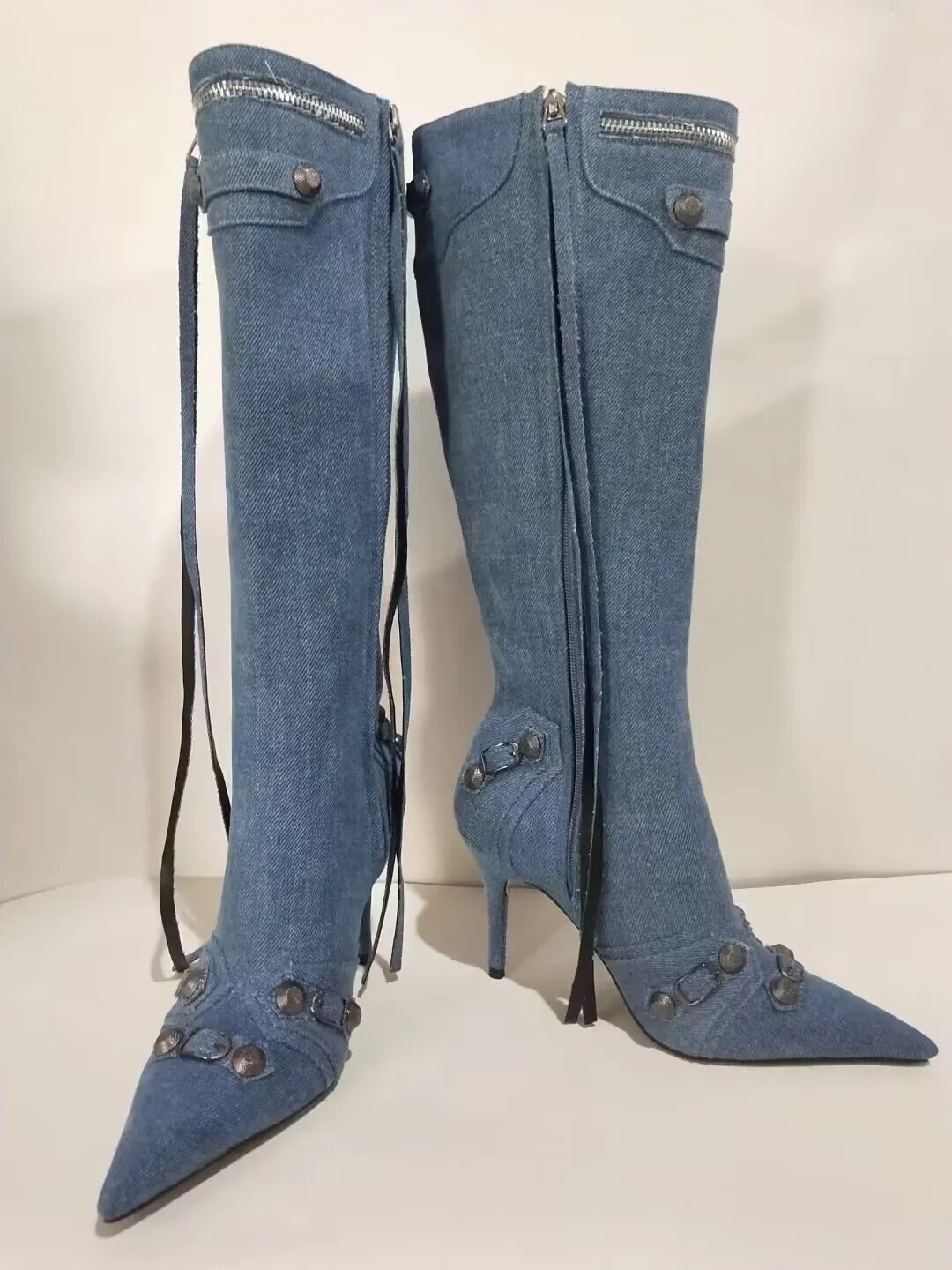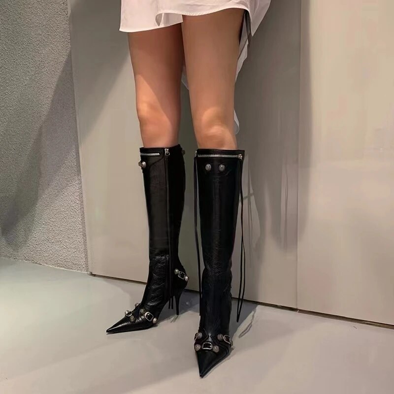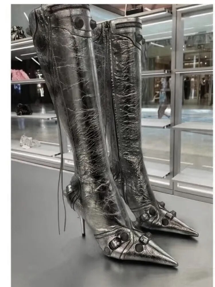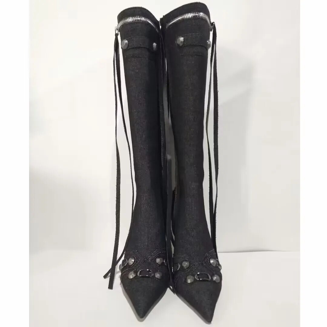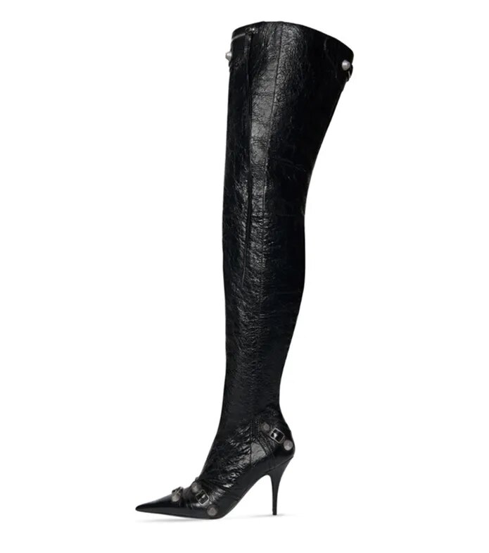 New Women's Pointed Toe Thin High Heels Long Boots Fashion Over Knee Boots European and American Party Boots Size