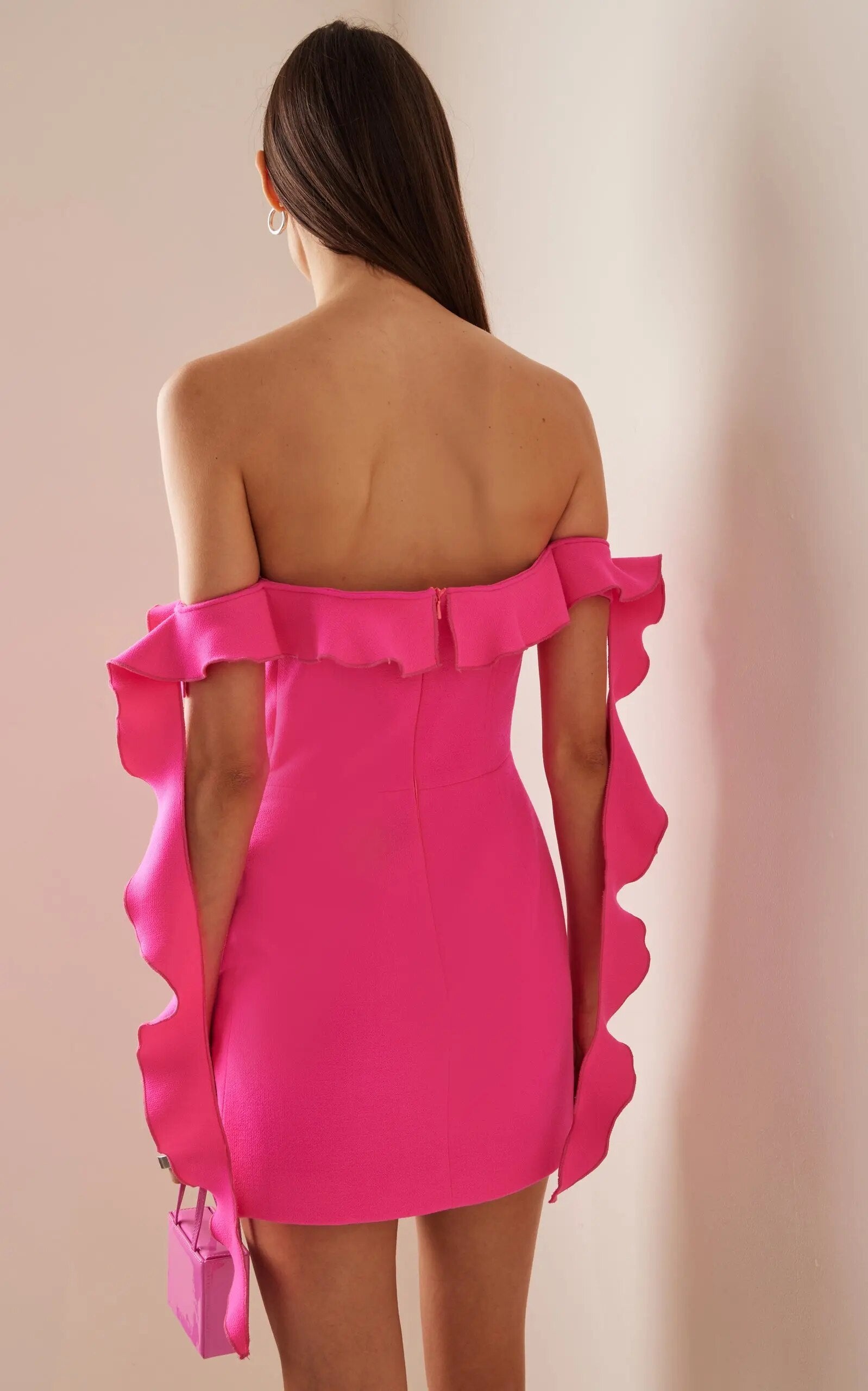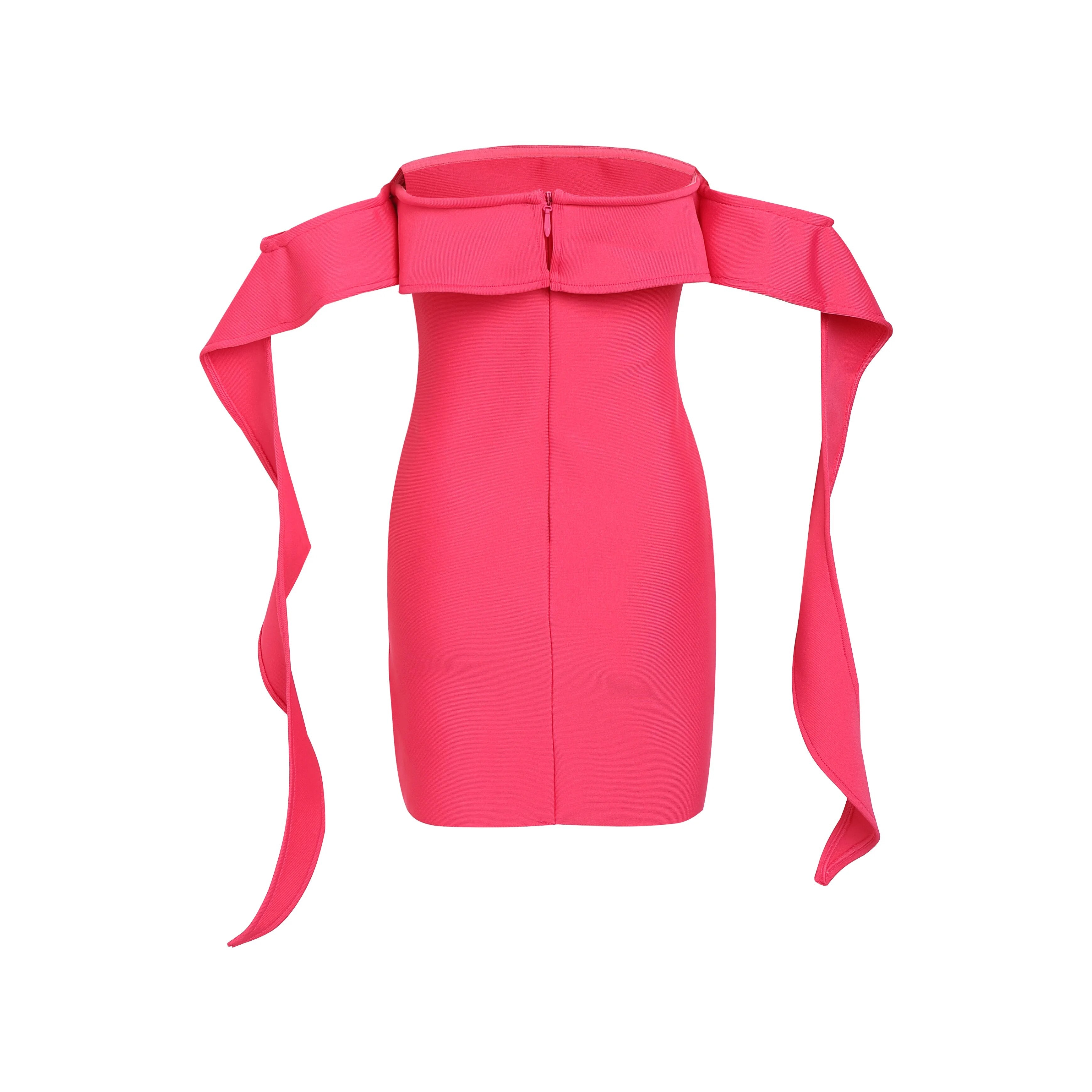 Rose Red Color Long Ruffles Sexy Slash Neck Mini Dress Hotsweet Woman Birthday Party Outfit Celebrtiy Party Vesrtido