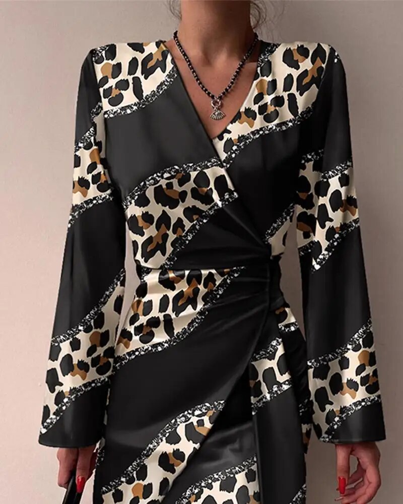Spring Flower Print Women's Dress Summer V-neck Sexy Long-sleeved Split Party Dress Office Formal Women's Fashion Dress