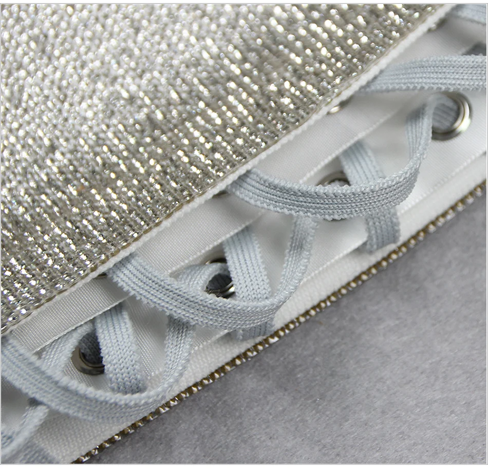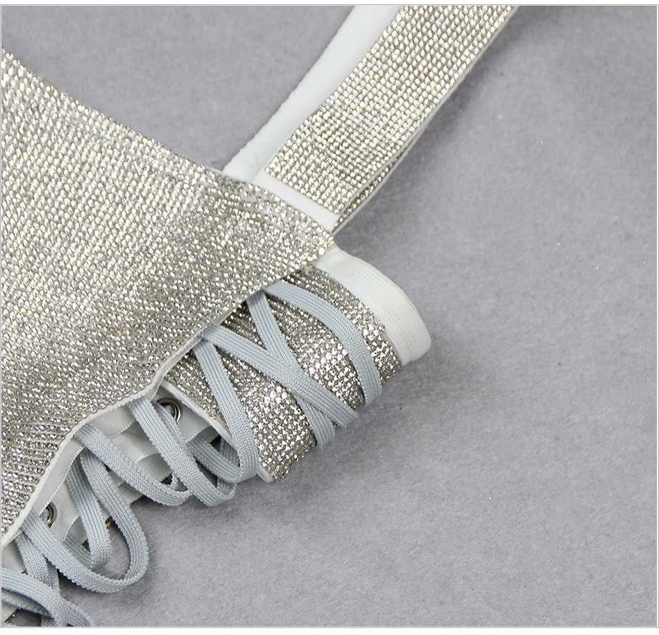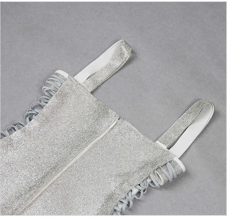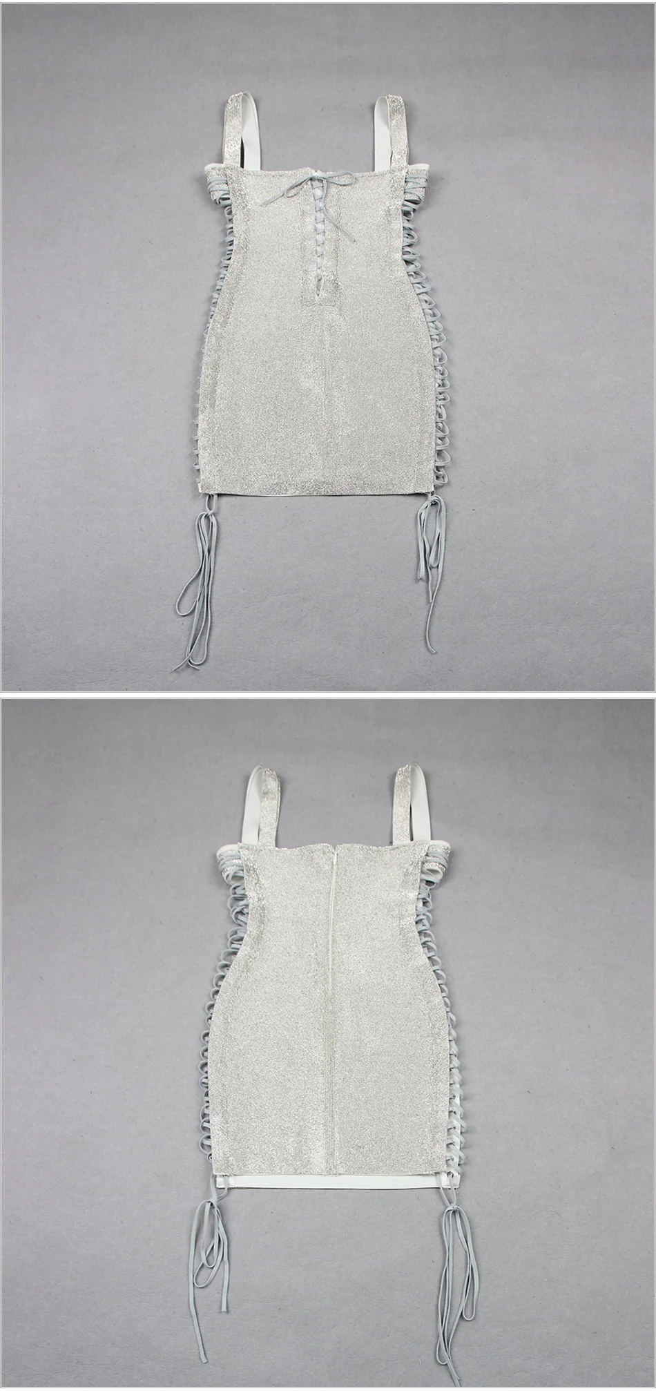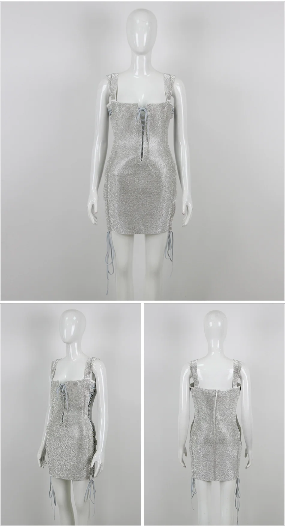 Color Rhinestones Sexy Sling Lace Up Hollow Out Wrapped Double Strap Mini Dress