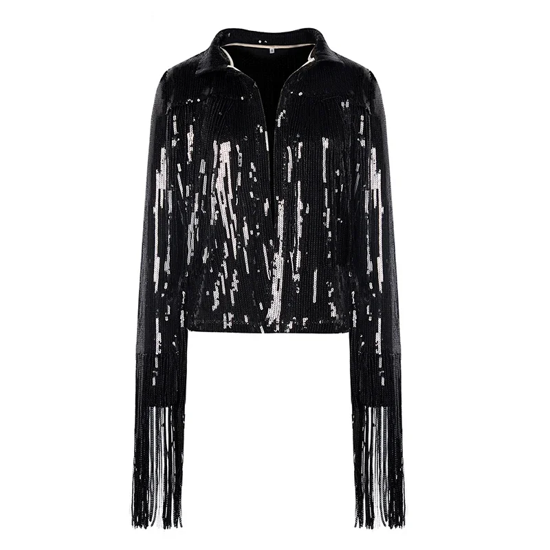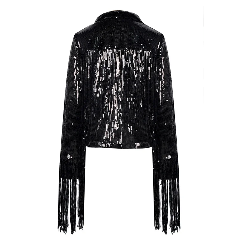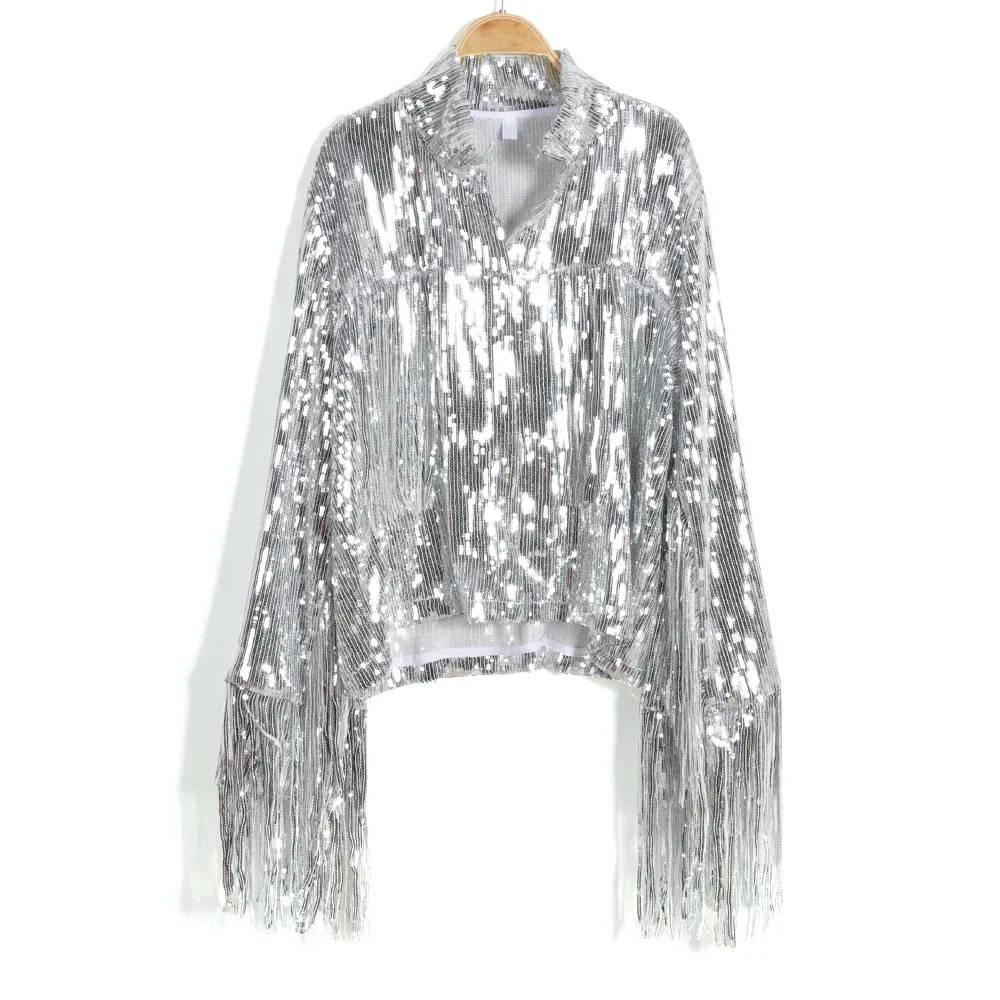 2023 Tassel Sequin Jacket Autumn Winter Streewear Rock Bf Retro Long-sleeved Silver Reflective Coat Women Outwear Tops2023 Tassel Sequin Jacket Autumn Winter Streewear Rock Bf Retro Long-sleeved Silver Reflective Coat Women Outwear Tops